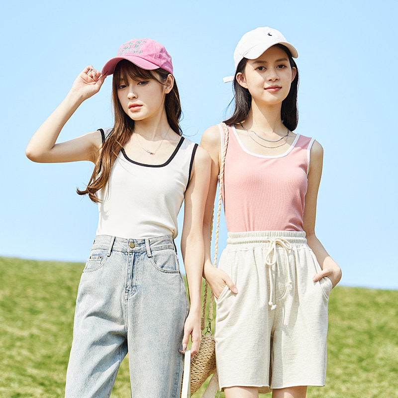Летний трикотажный топ с чашечками, приталенная базовая футболка без рукавов