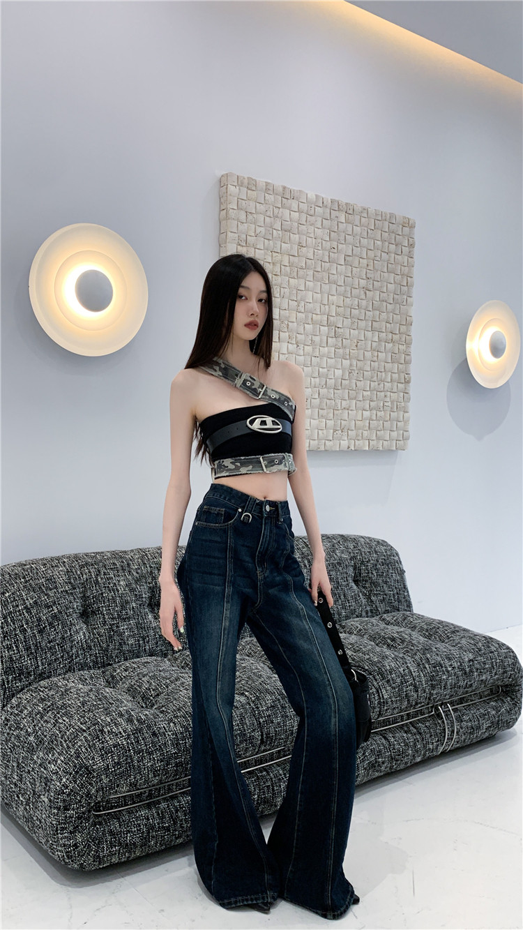 Летний джинсовый бюстгальтер-топ, топ с чашечками, европейский стиль, в американском стиле, с открытой спиной