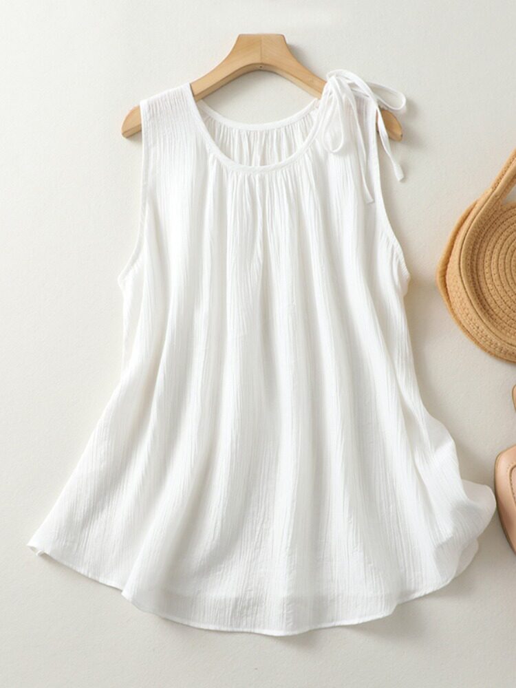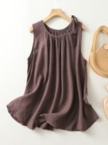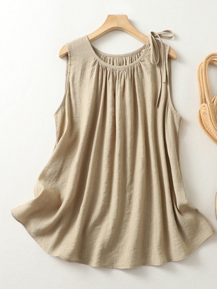Литературный жир MM, жилет большого размера из хлопка и льна из тенселя, женский летний свободный пуловер с круглым вырезом на шнуровке, большие качели, тонкий пуловер на животе