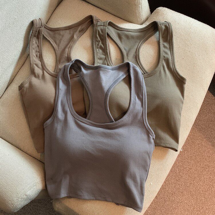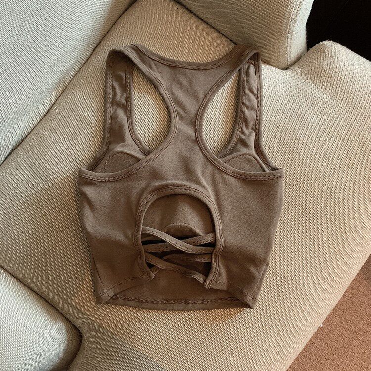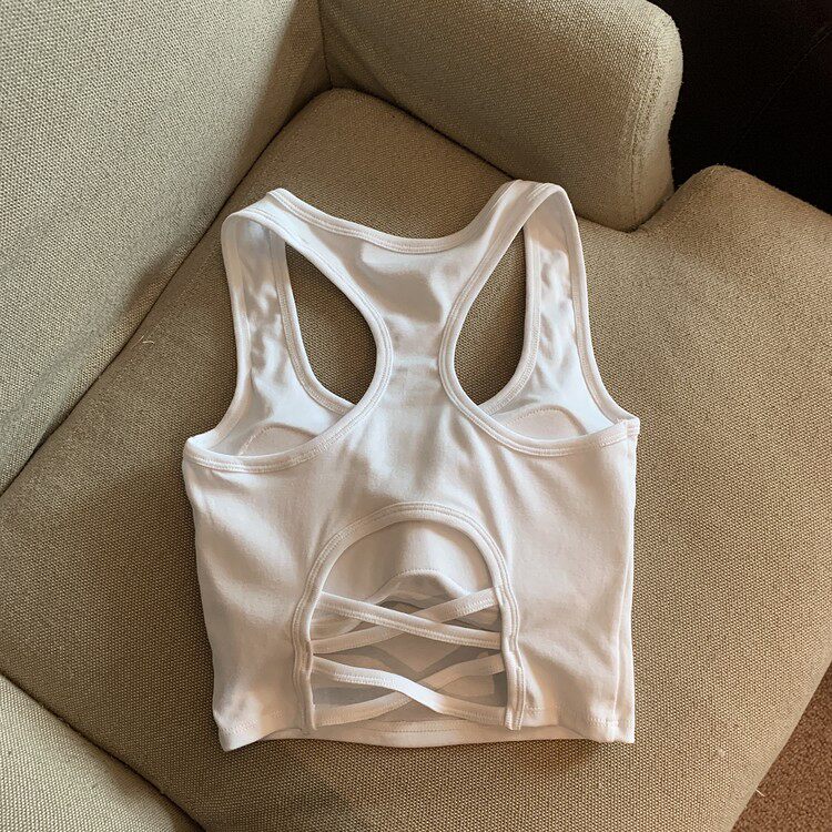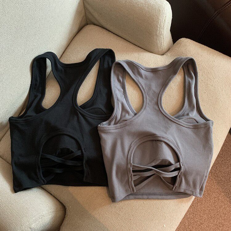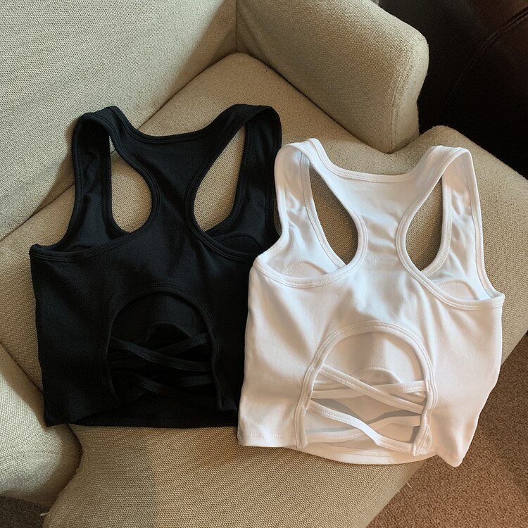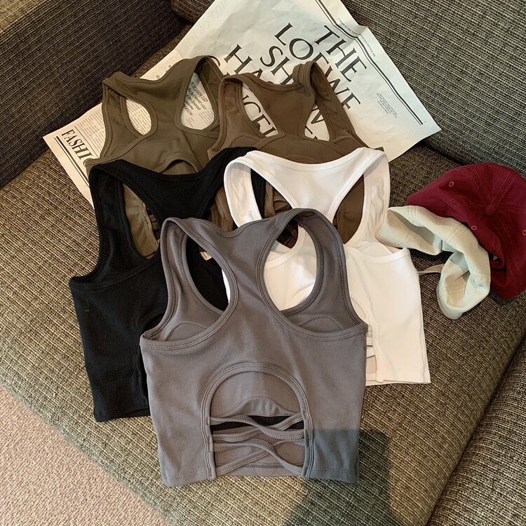 Летняя универсальная майка топ, спортивный короткий топ с чашечками, с открытой спиной, коллекция 2023