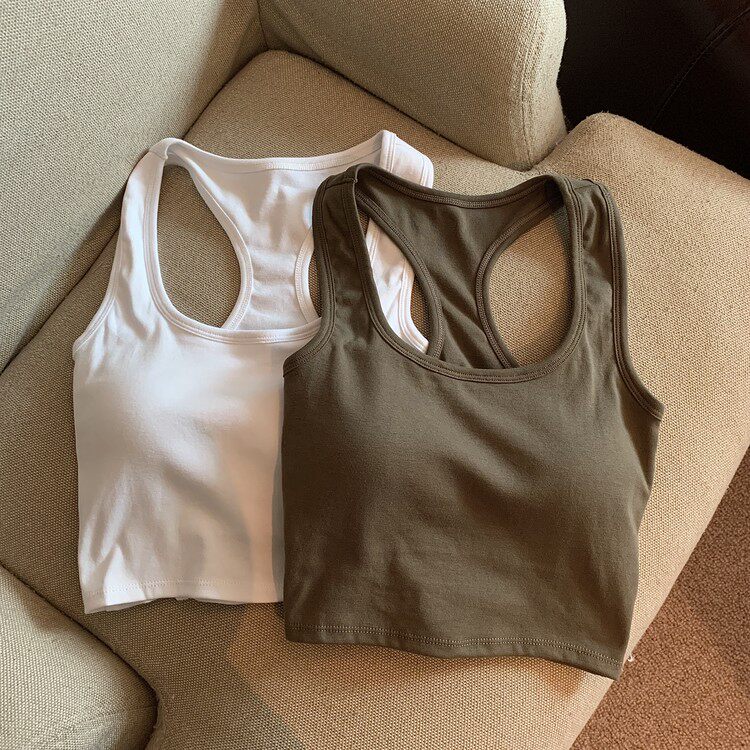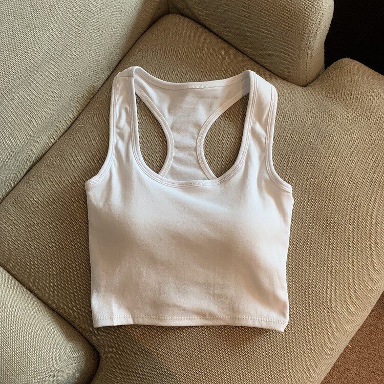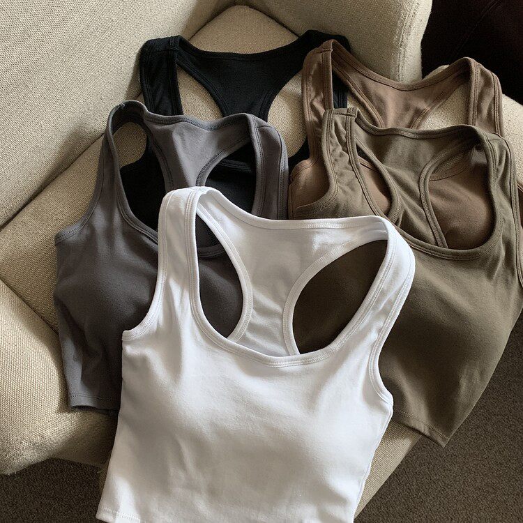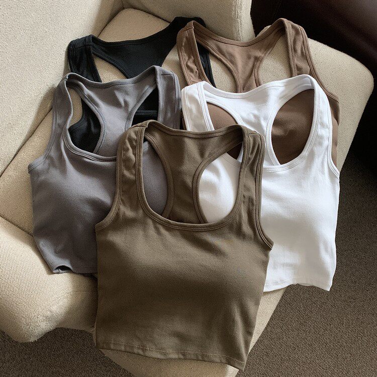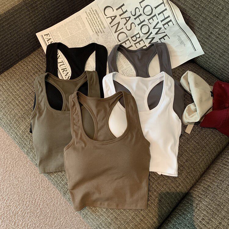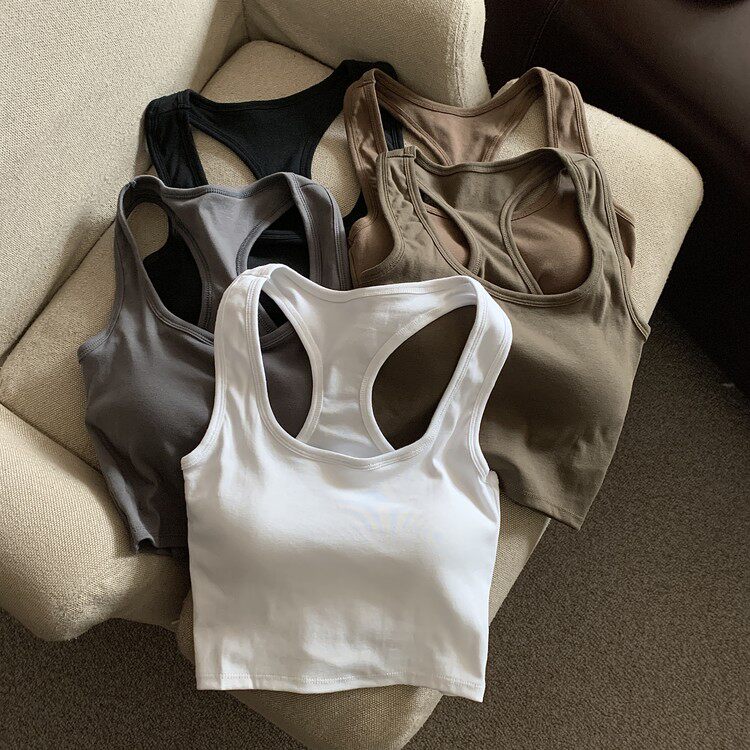 Летняя универсальная майка топ, спортивный короткий топ с чашечками, с открытой спиной, коллекция 2023