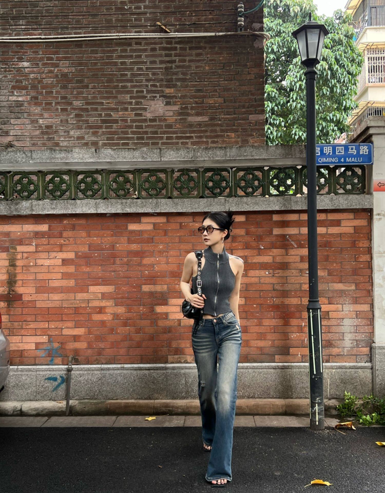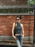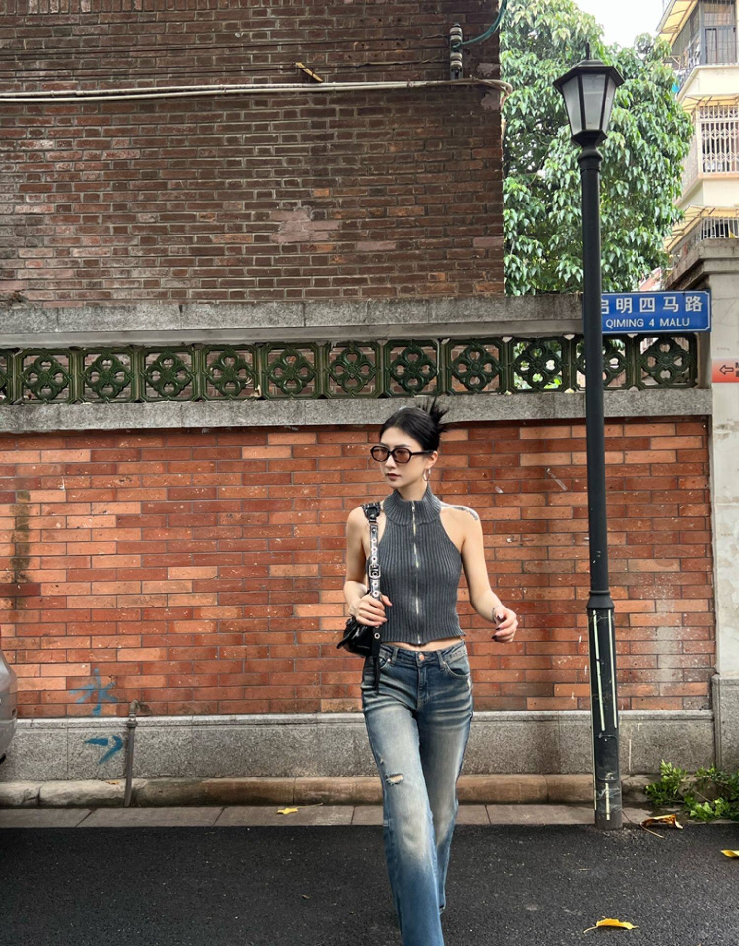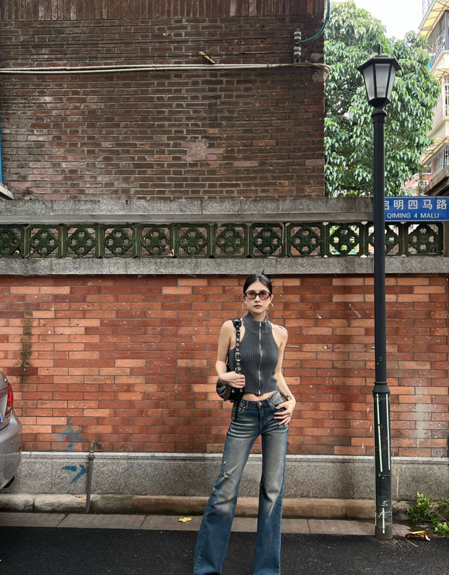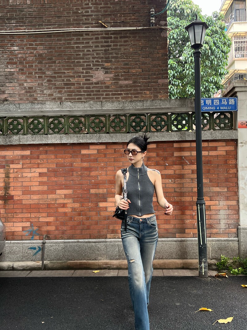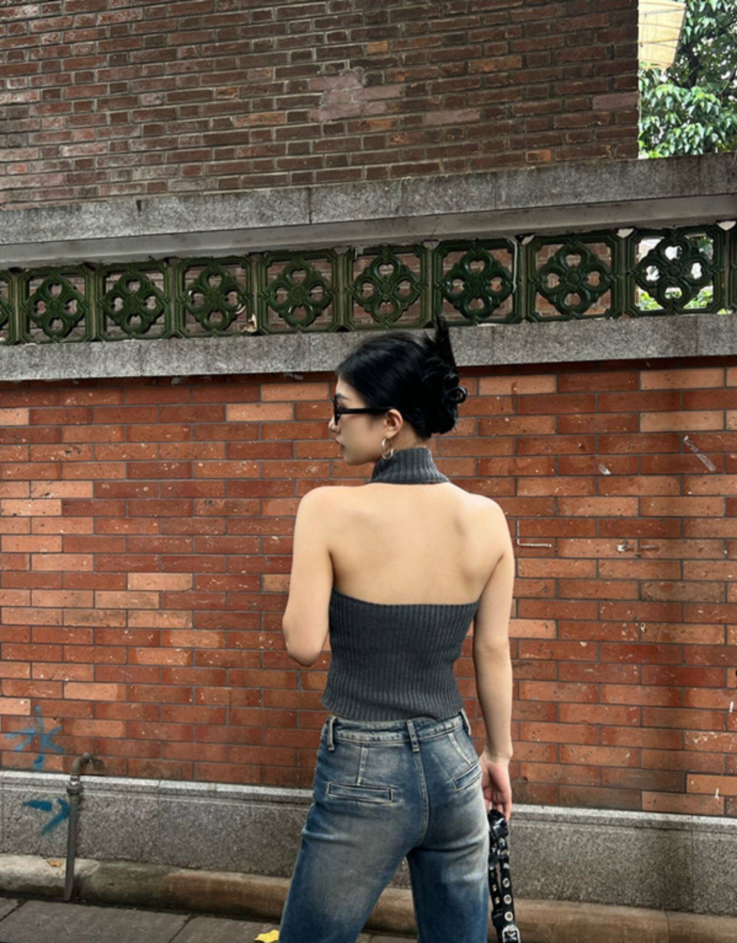 Тонкая майка топ без рукавов с молнией, сексуальный трикотажный свитер, изысканный стиль, яркий броский стиль, с открытой спиной