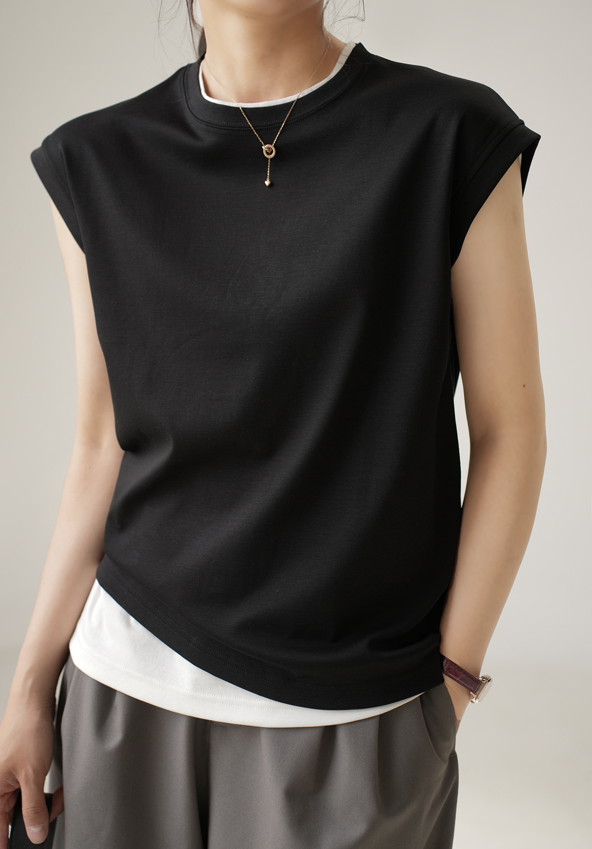 Манжеты широко обозначены, а сторона подмышки выше, чтобы сделать ее более тонкими и покрывать грудь