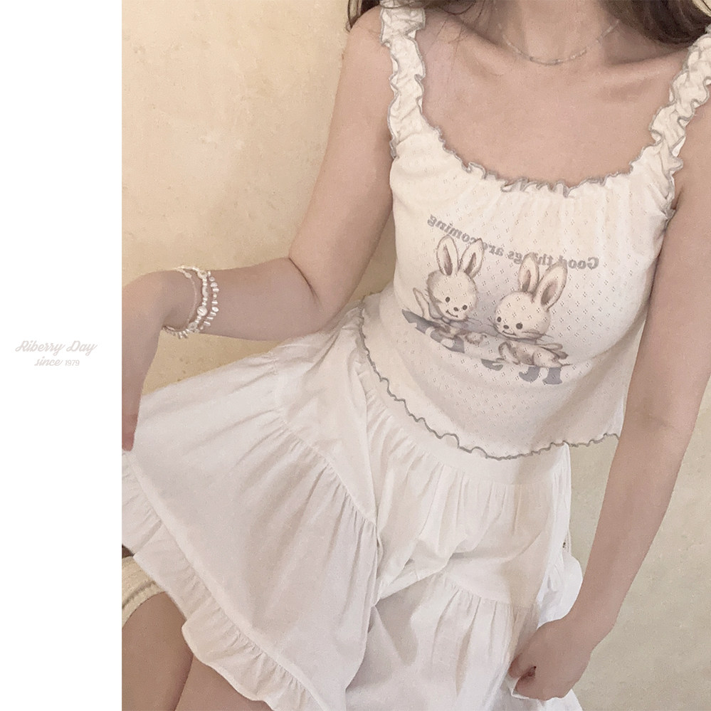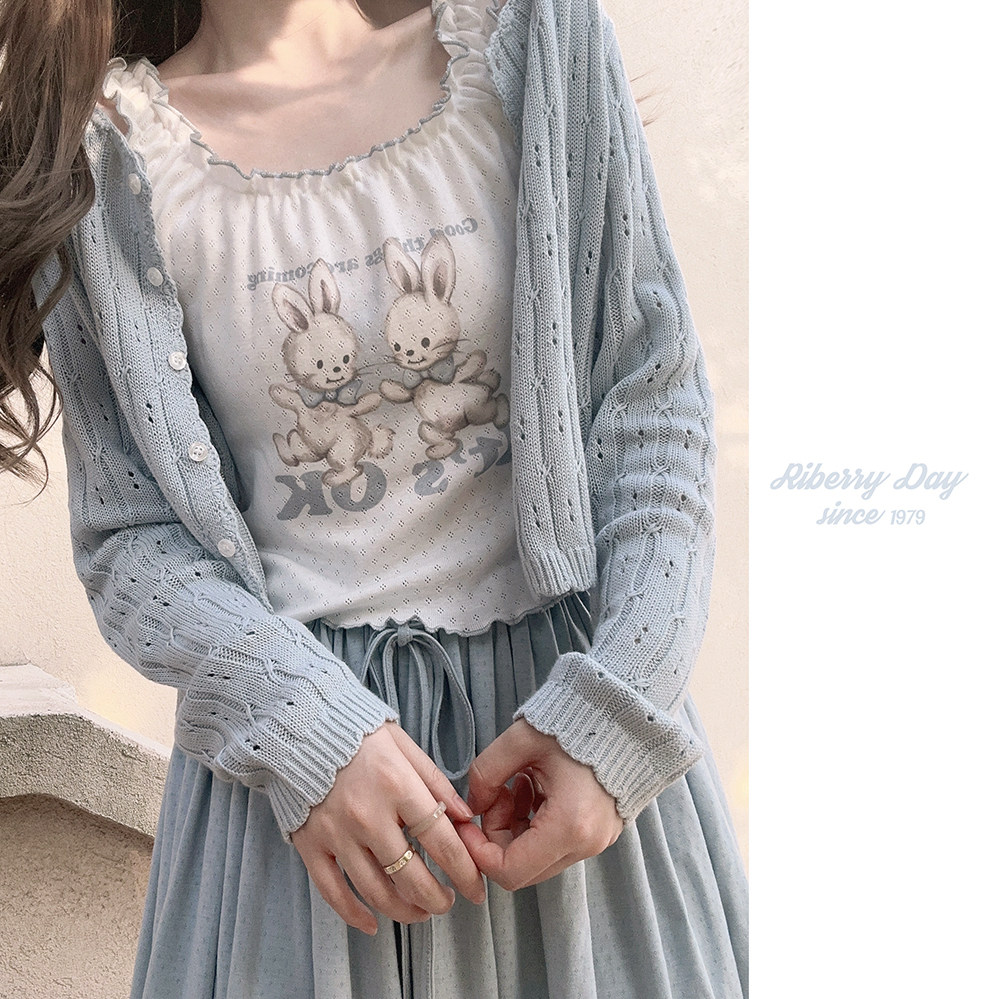 Ретро французская девушка Showa Кролик Caliba Hollow Big Salline с жилетом U