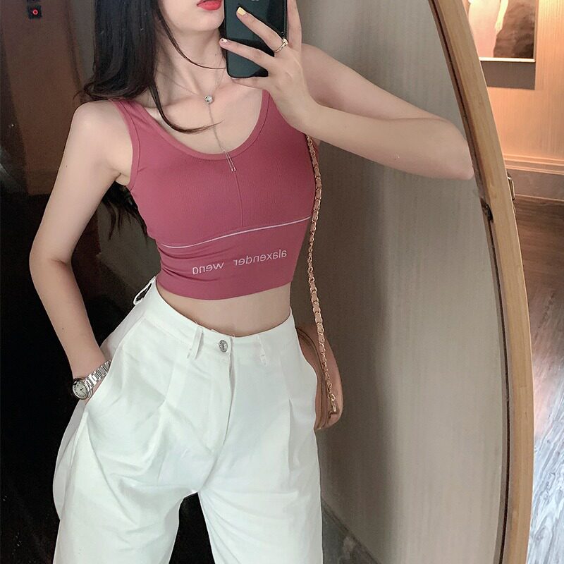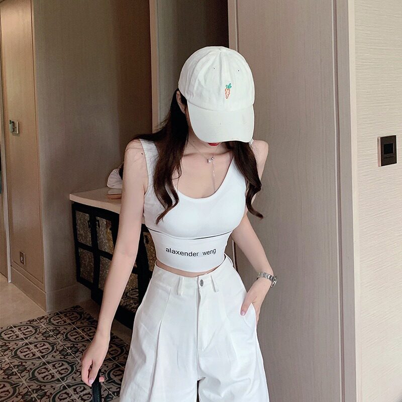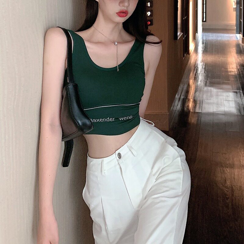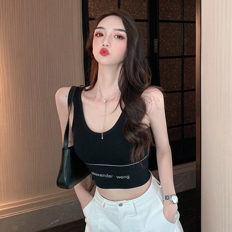 Черная спортивная майка топ, базовый топ с чашечками, короткий бюстгалтер с буквами