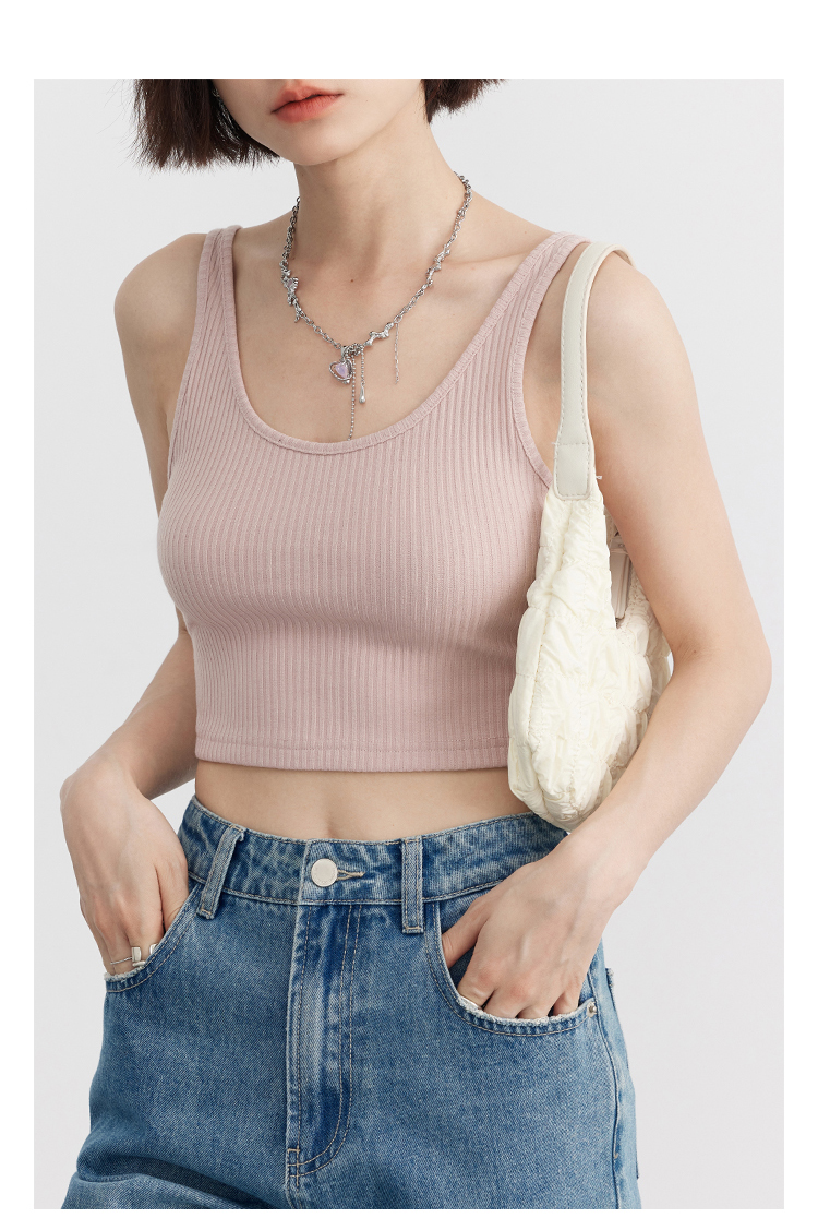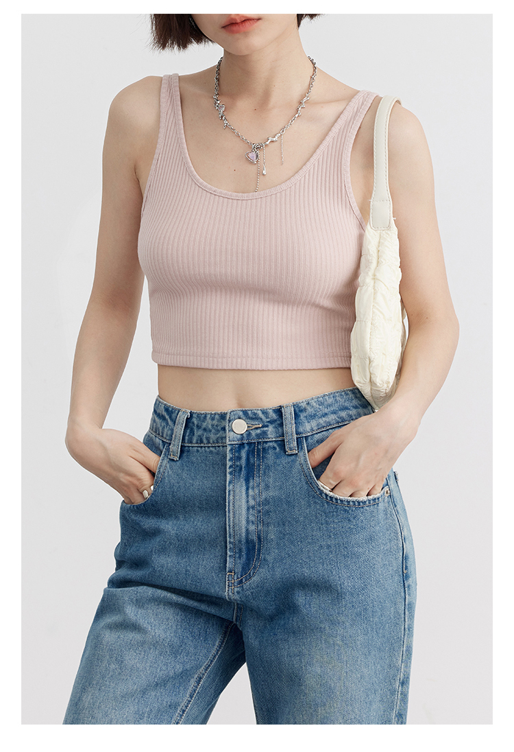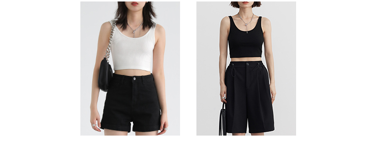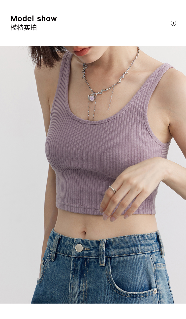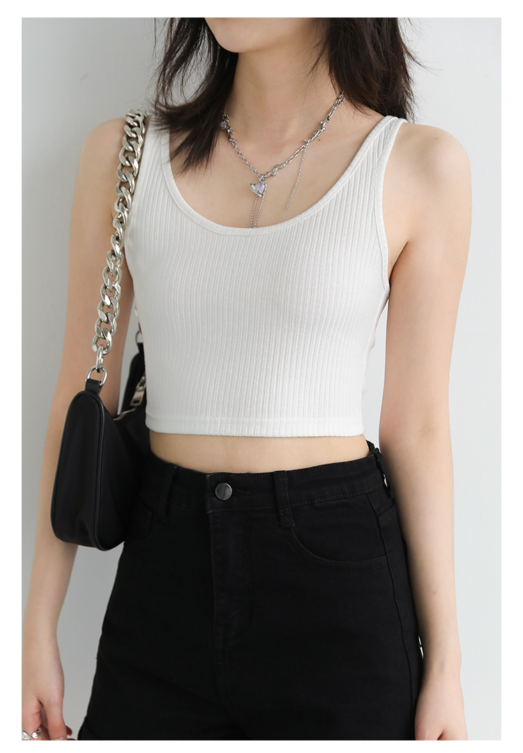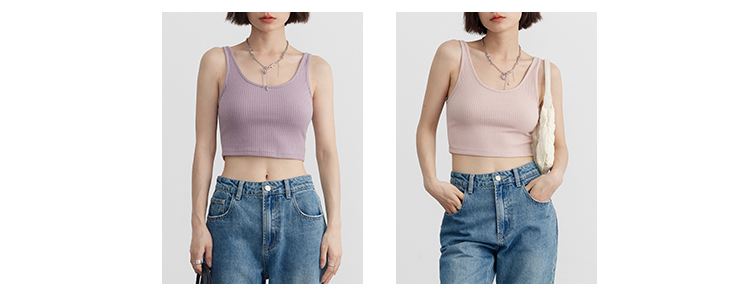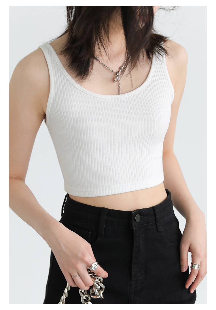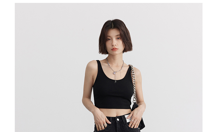 Короткая версия, правильная длина легко Большой U -Collar Design of Front Film, сбиваясь с ощущением красоты, показывая хорошую фигуру Широкий и узкий дизайн ремня на плече показывает немного осторожную машину, поэтому я могу ее носить Вертикальные ямы вязаные ткани также тонкие и тонкие, а эластичность достаточна