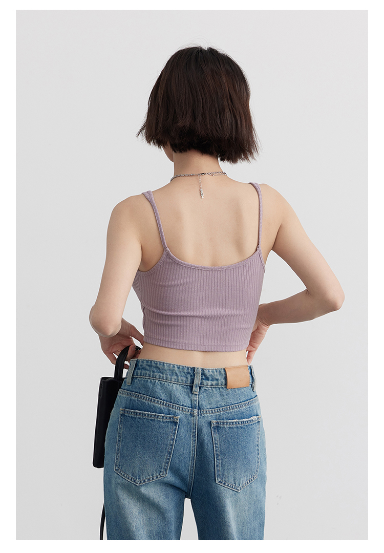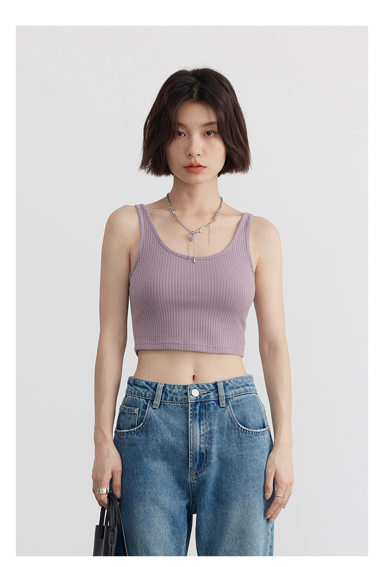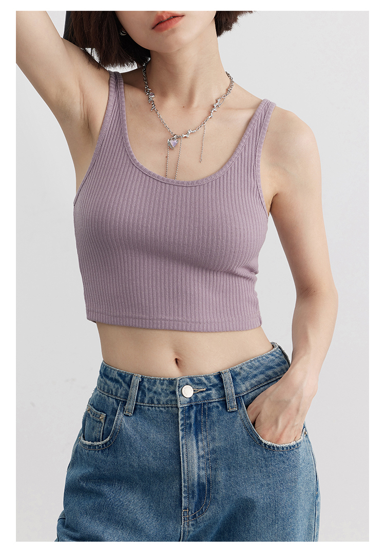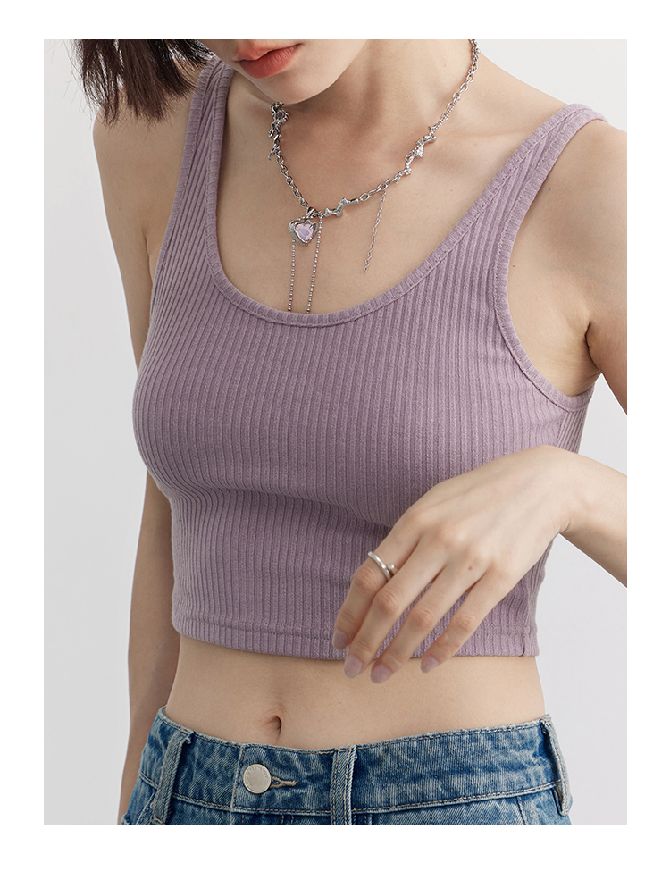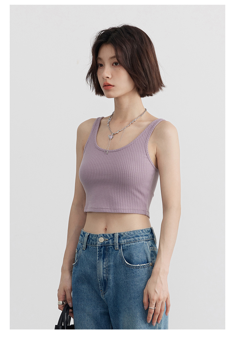 Короткая версия, правильная длина легко Большой U -Collar Design of Front Film, сбиваясь с ощущением красоты, показывая хорошую фигуру Широкий и узкий дизайн ремня на плече показывает немного осторожную машину, поэтому я могу ее носить Вертикальные ямы вязаные ткани также тонкие и тонкие, а эластичность достаточна