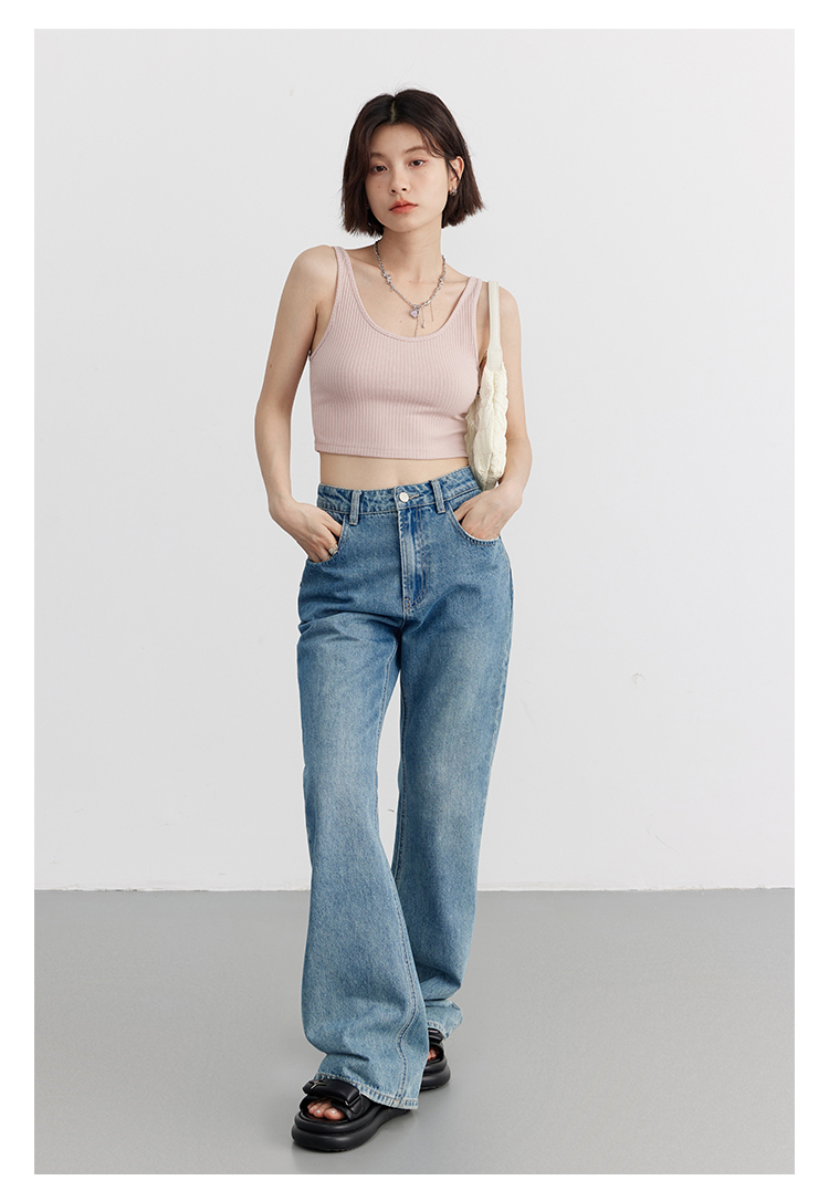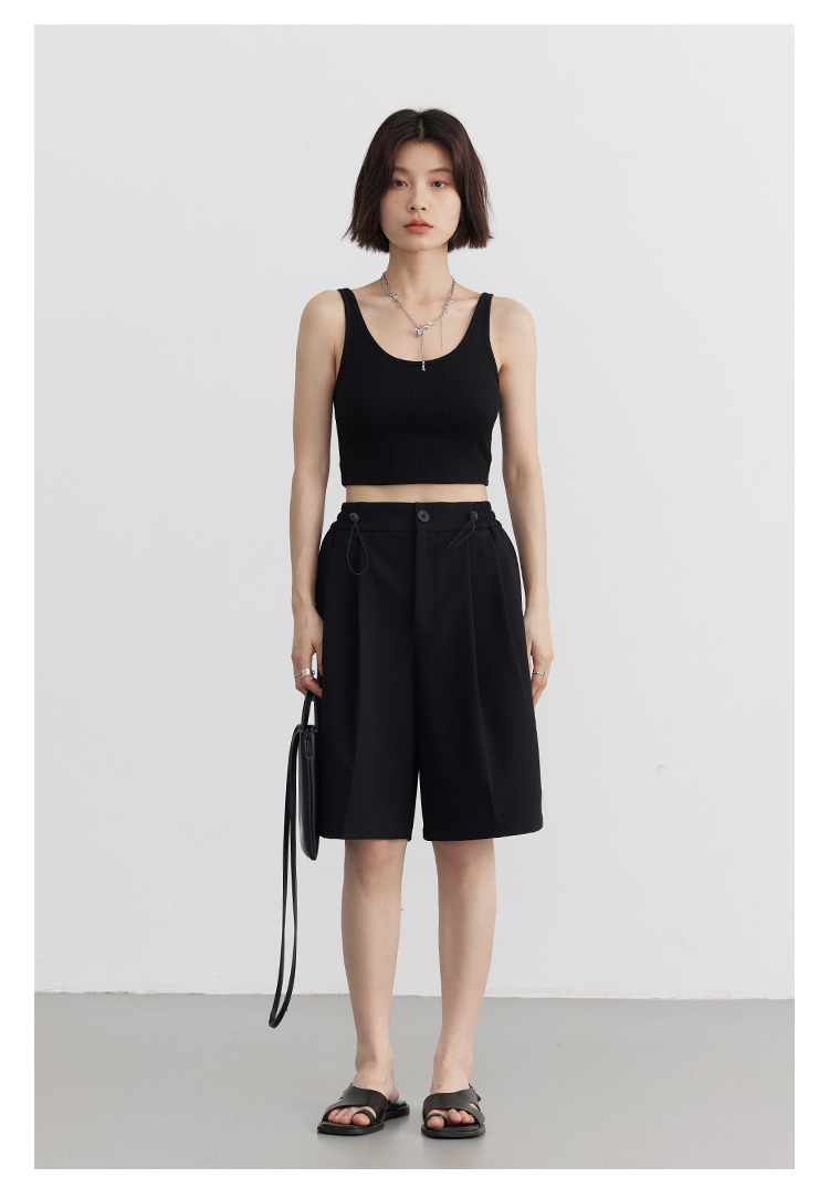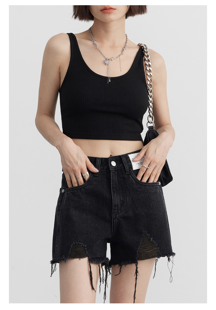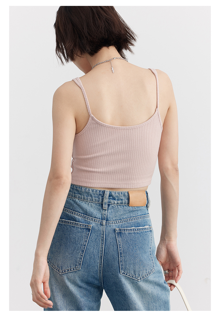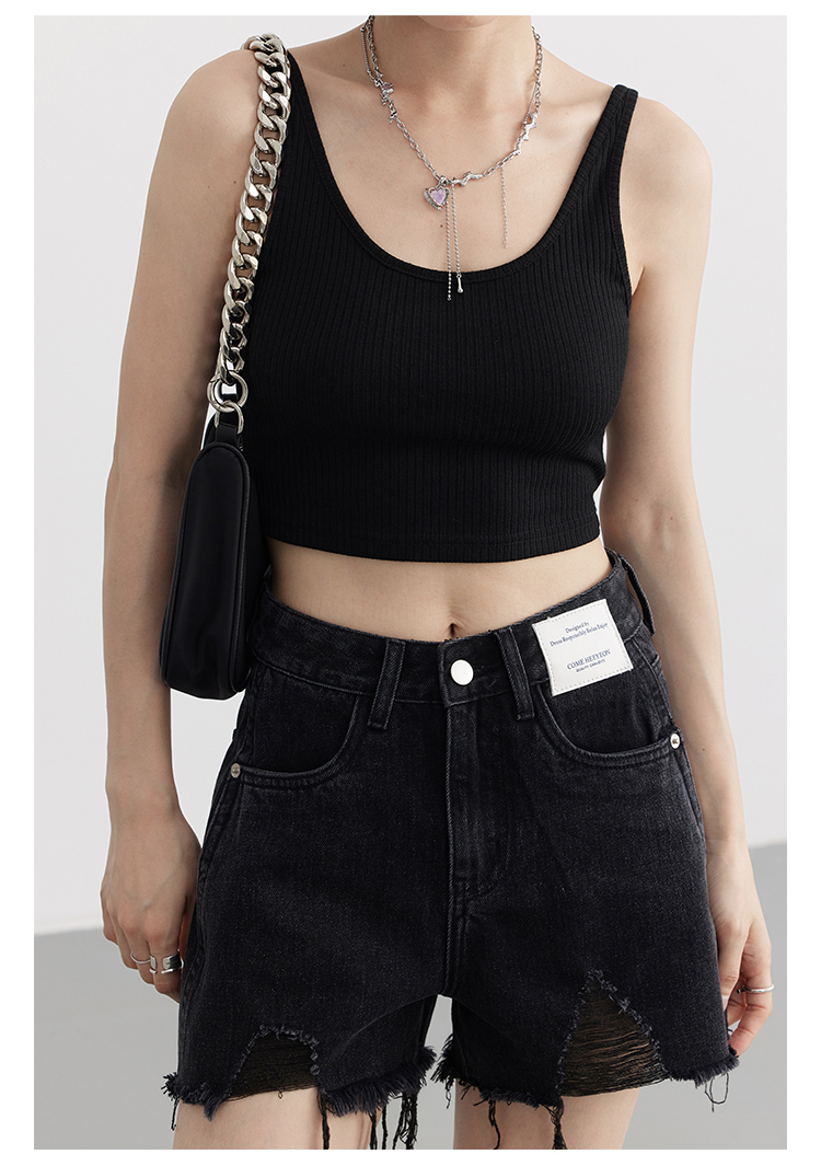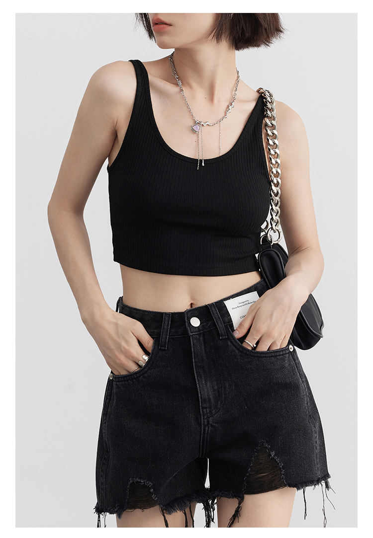 Короткая версия, правильная длина легко Большой U -Collar Design of Front Film, сбиваясь с ощущением красоты, показывая хорошую фигуру Широкий и узкий дизайн ремня на плече показывает немного осторожную машину, поэтому я могу ее носить Вертикальные ямы вязаные ткани также тонкие и тонкие, а эластичность достаточна