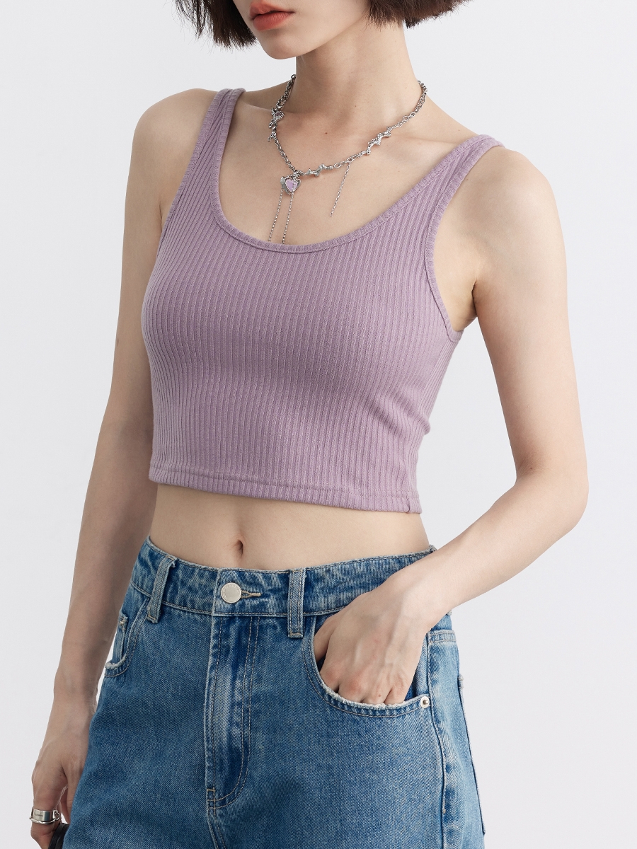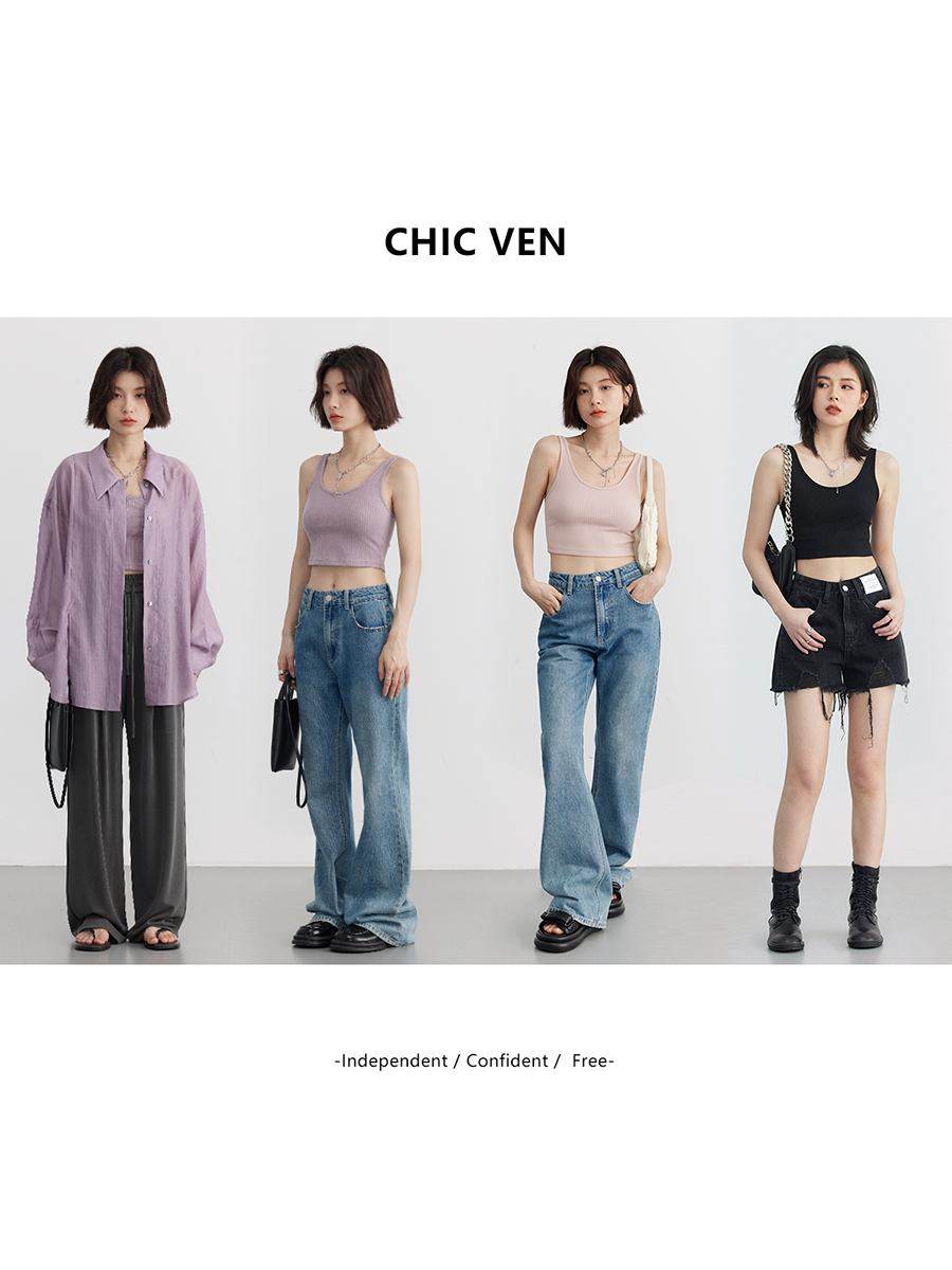 Chicven "Summer Vacation" Много -роговые дополнительные простые Slim Short U -Collar Pits вязаные камизоль