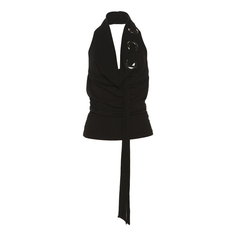 Горячие девушки на музыкальном фестивале носят персонализированный черный жилет без рукавов с воротником-бретелькой для женщин и дизайнерским плиссированным утягивающим топом