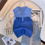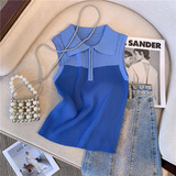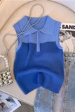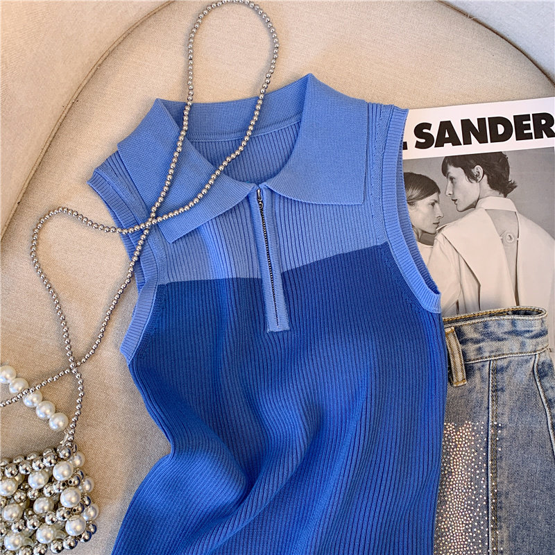 Трикотажный жилет, майка топ, кардиган с молнией без рукавов, воротник поло, на молнии