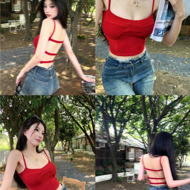 Красная демисезонная майка топ, сексуальный топ с чашечками, с открытой спиной, для маленькой груди, красивая спина