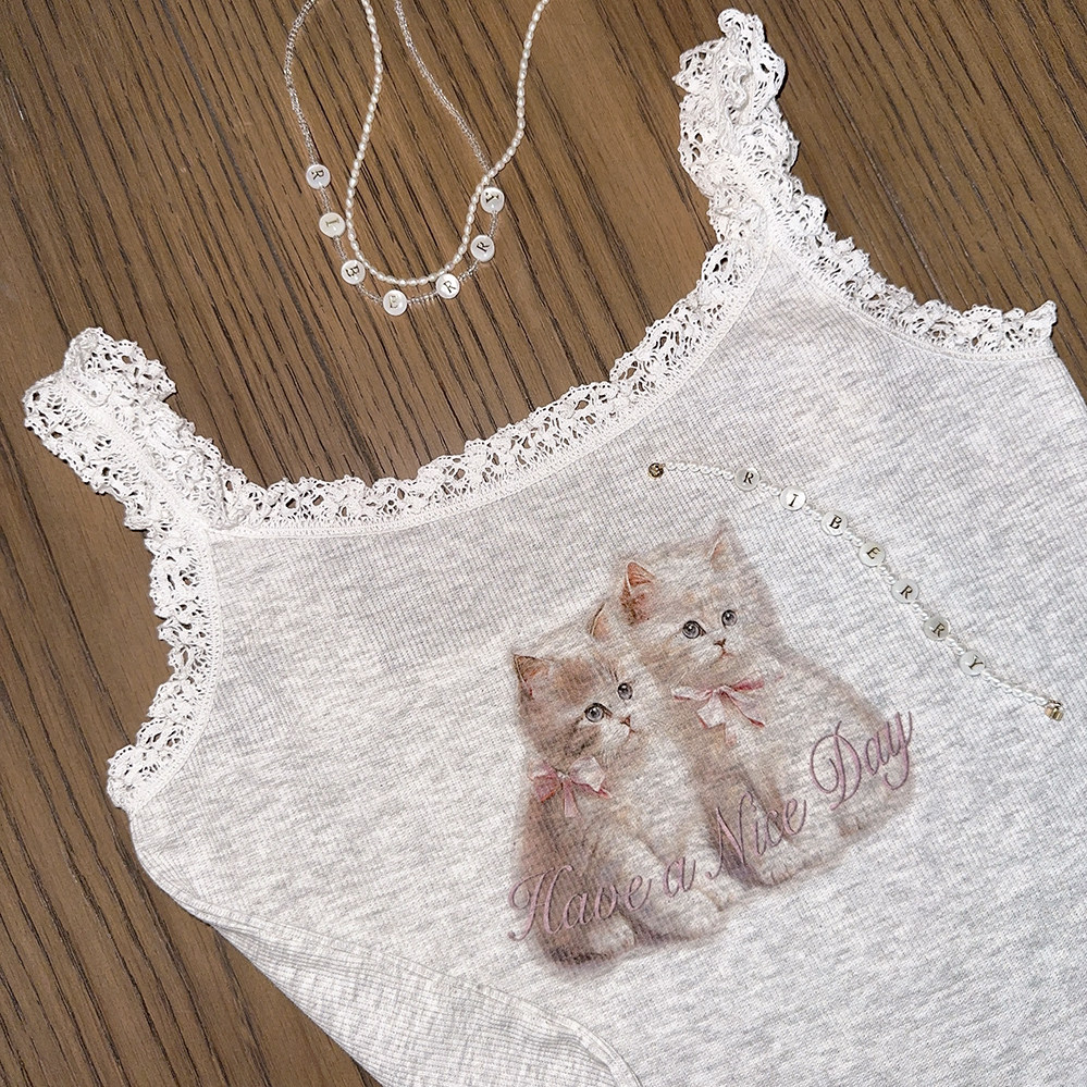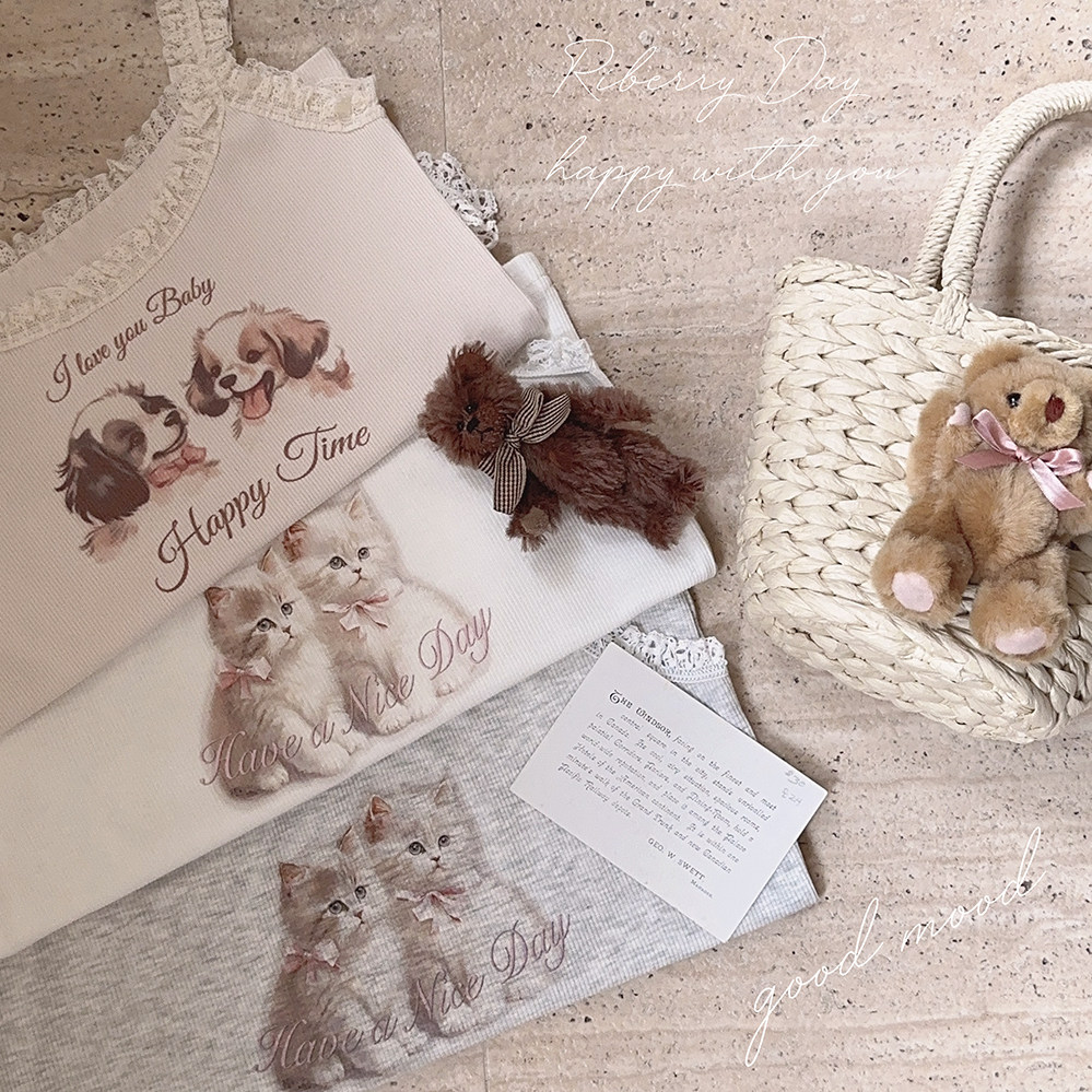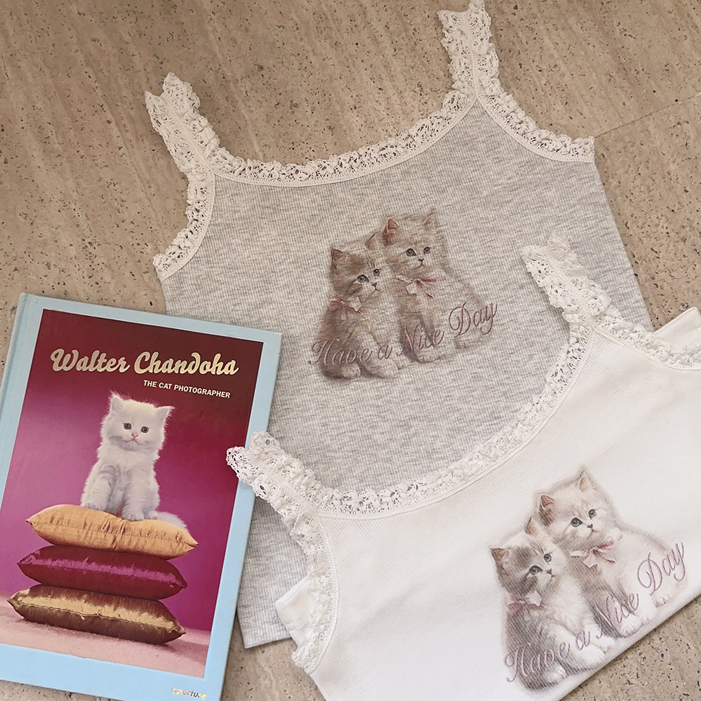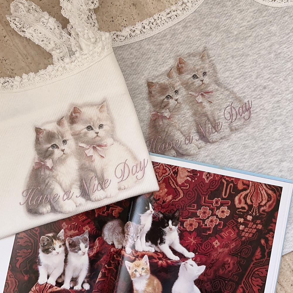 Ретро французская девушка кружевная кружевная белая толстая кошка/счастливая щенка