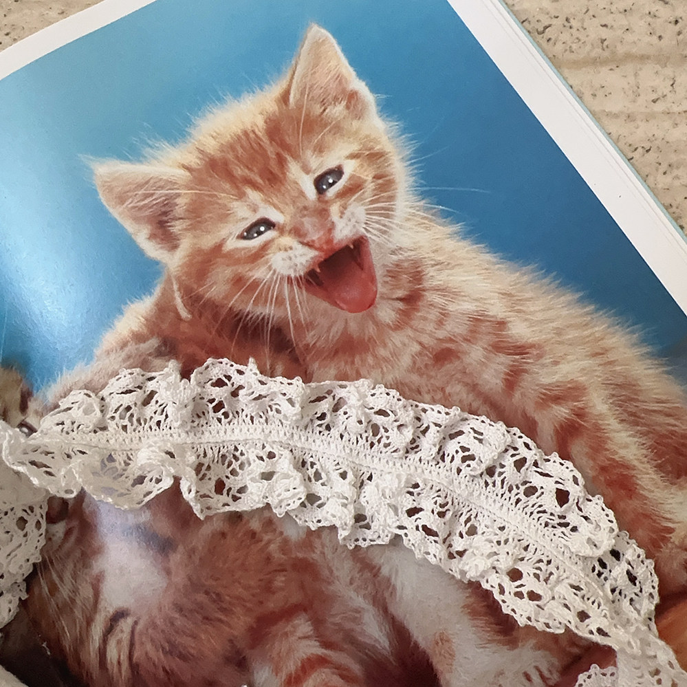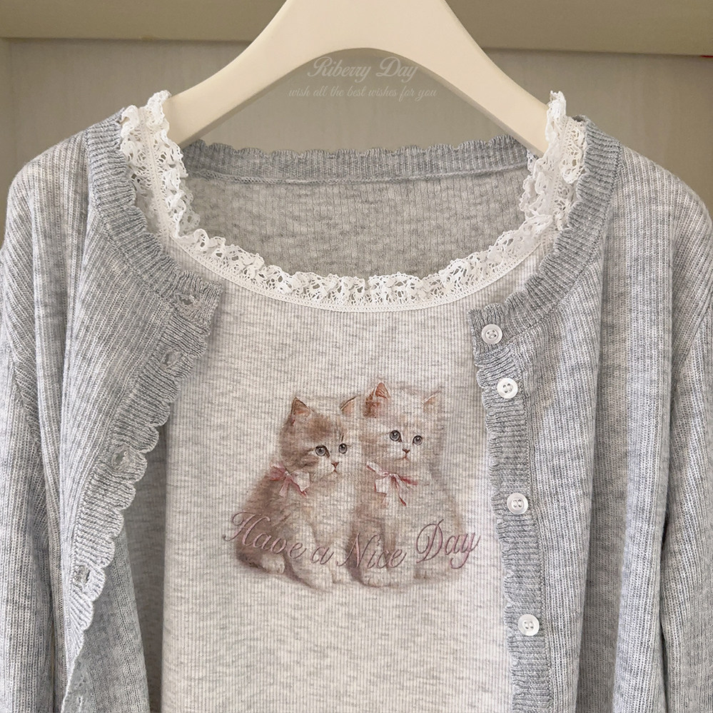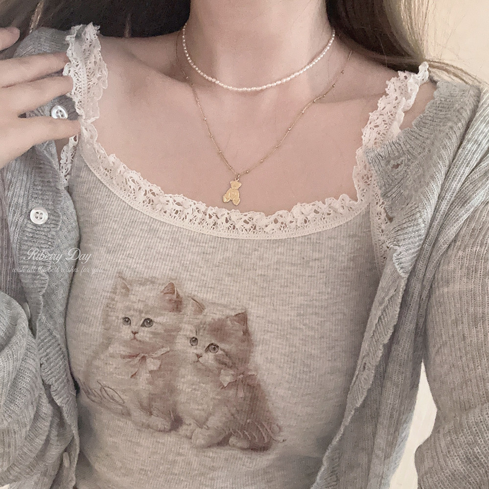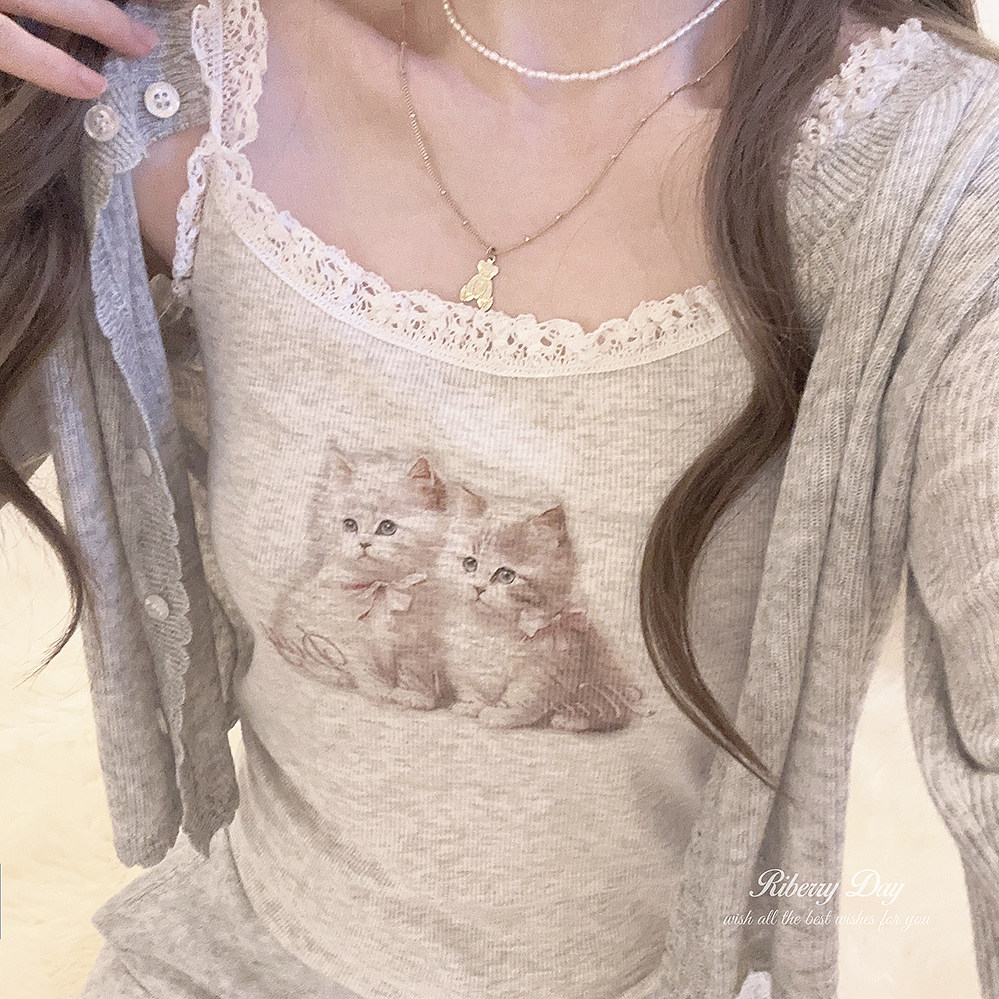 Ретро французская девушка кружевная кружевная белая толстая кошка/счастливая щенка