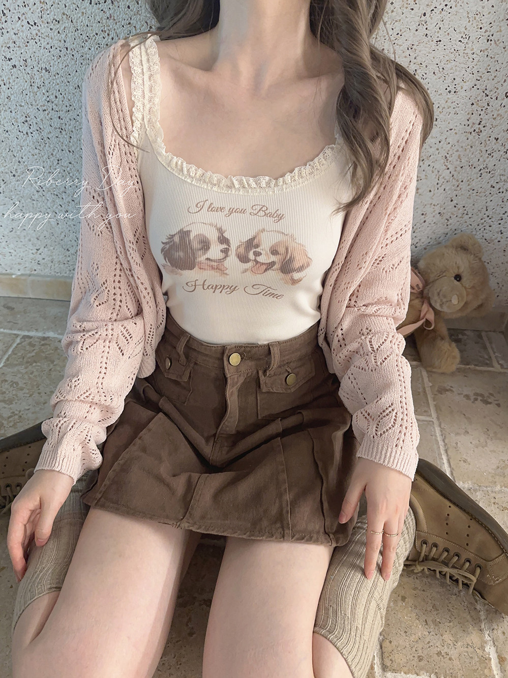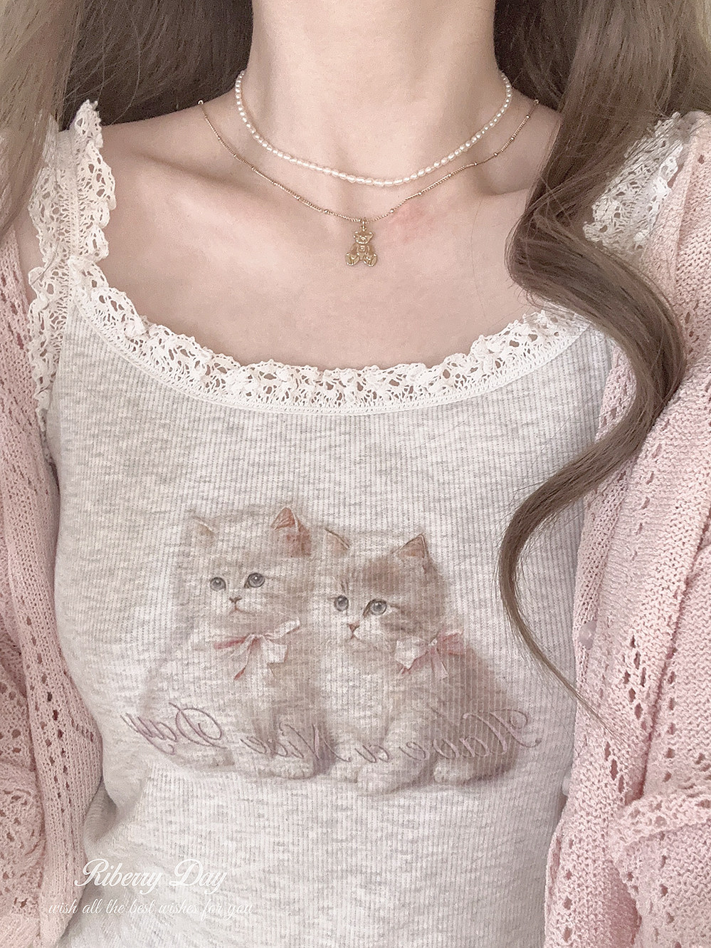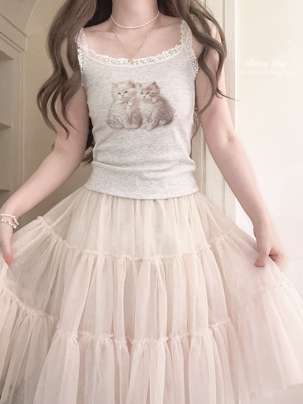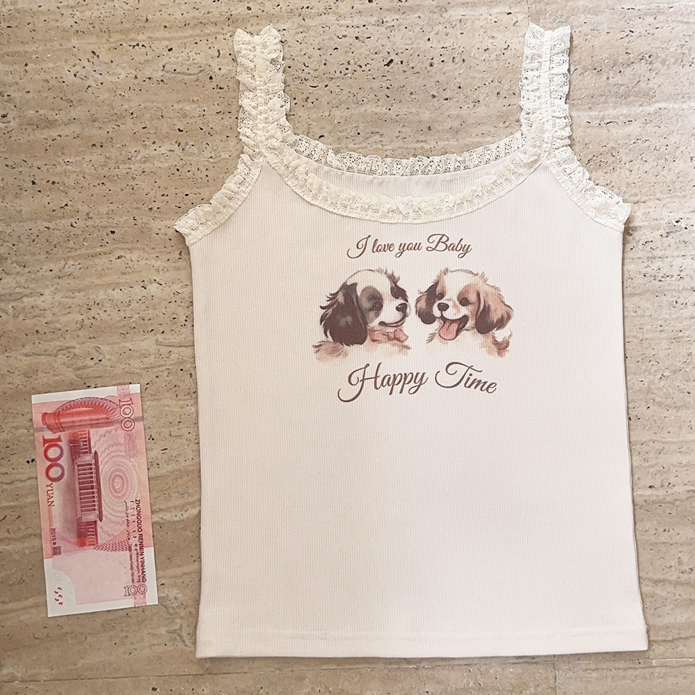 Ретро французская девушка кружевная кружевная белая толстая кошка/счастливая щенка