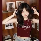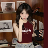 Бордовый летний топ с чашечками, футболка без рукавов, в американском стиле, по фигуре, облегающий крой