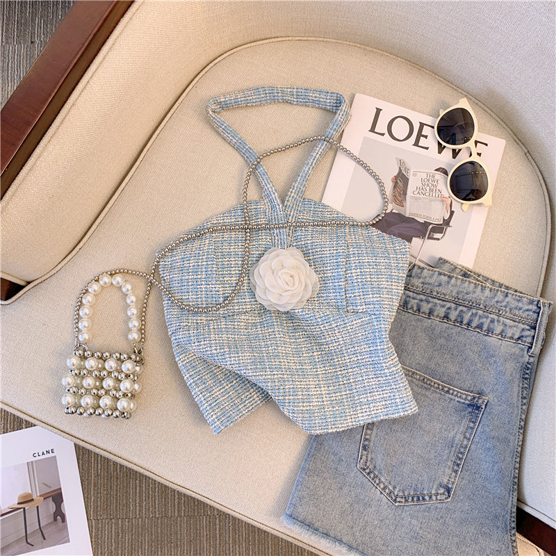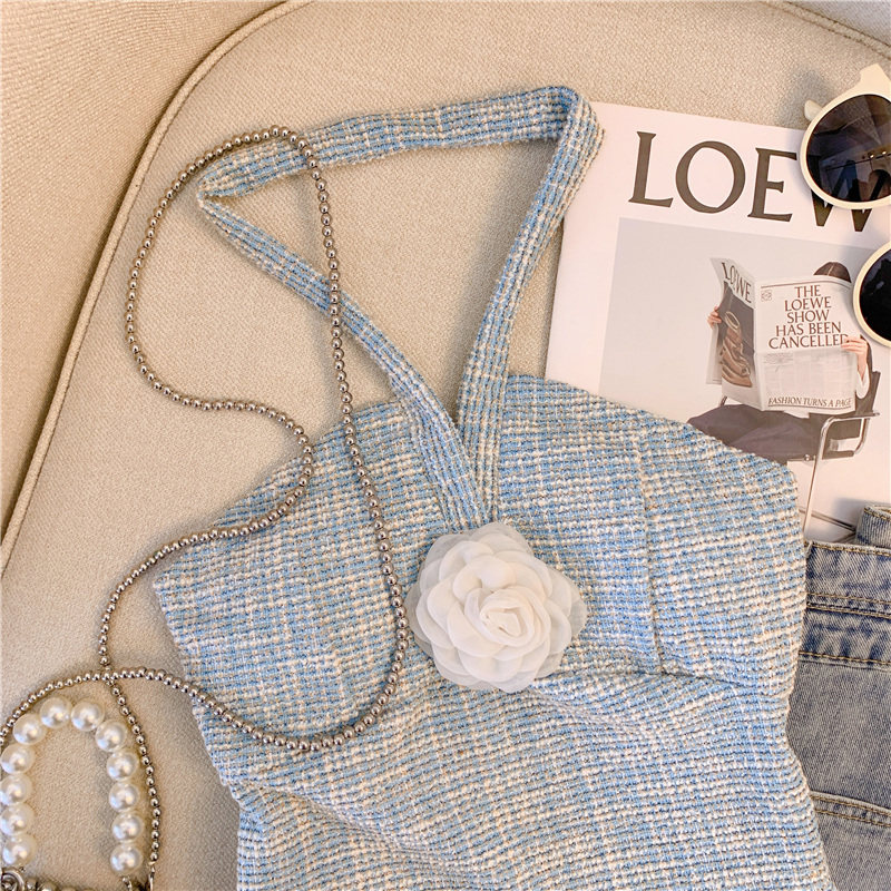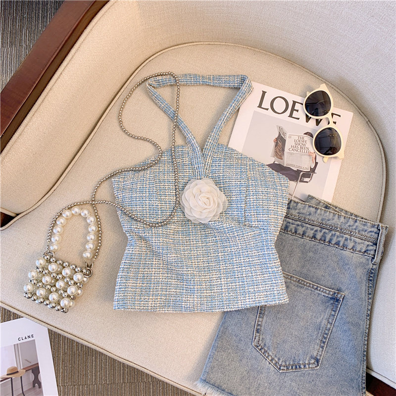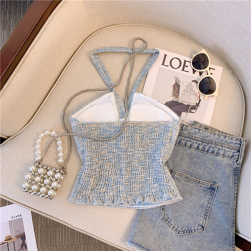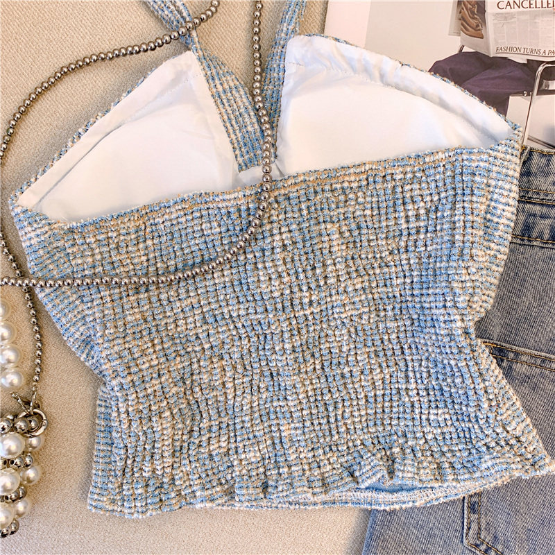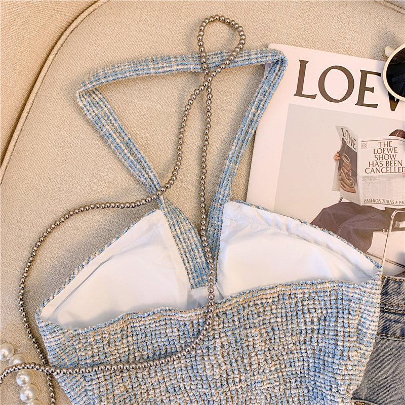 Топ с чашечками, майка топ, трехмерный горный чай, футболка без рукавов, в стиле Шанель, красивая спина, открытые плечи