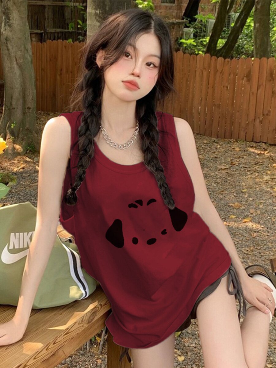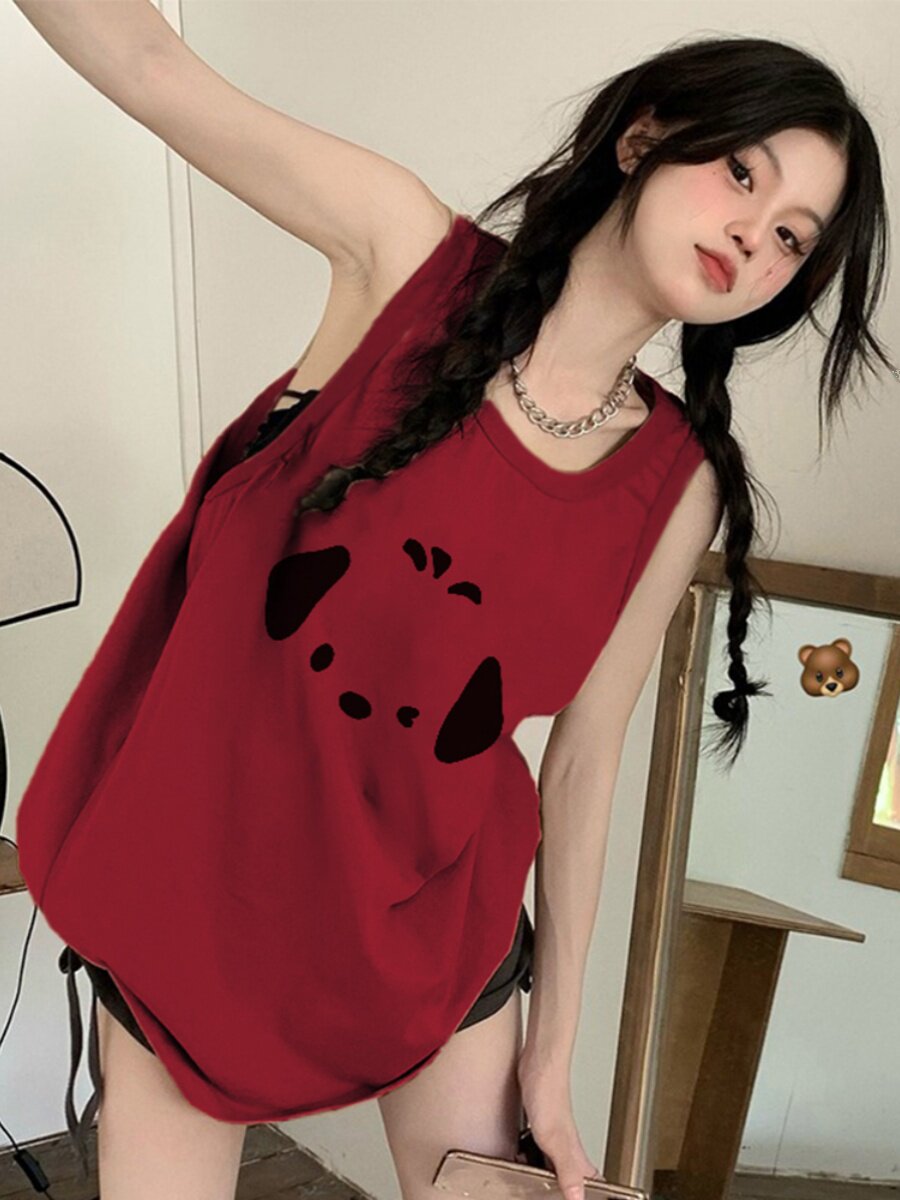Бордовый дизайнерский жилет, весенняя летняя майка, футболка без рукавов, тренд сезона, эффект подтяжки, оверсайз, свободный крой