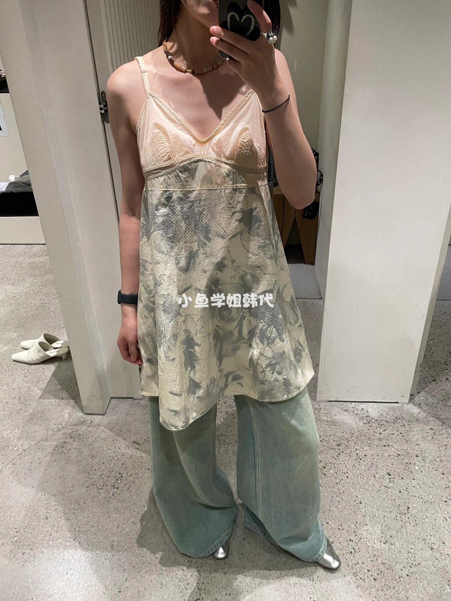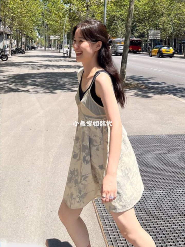 Onemic Spot Low Classic 24SS Spring New See -Through Stitching French Printing Camisole Dress