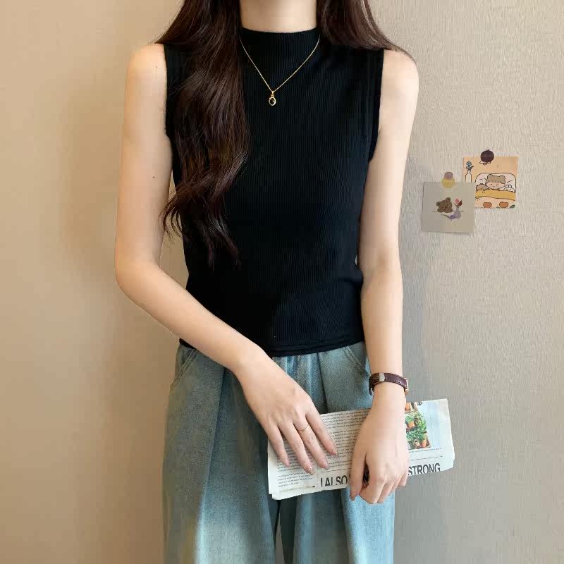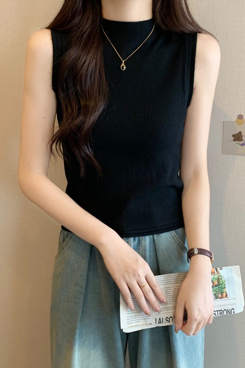 Майка топ, приталенный базовый приятный телу топ с чашечками без рукавов, большой размер, высокий воротник