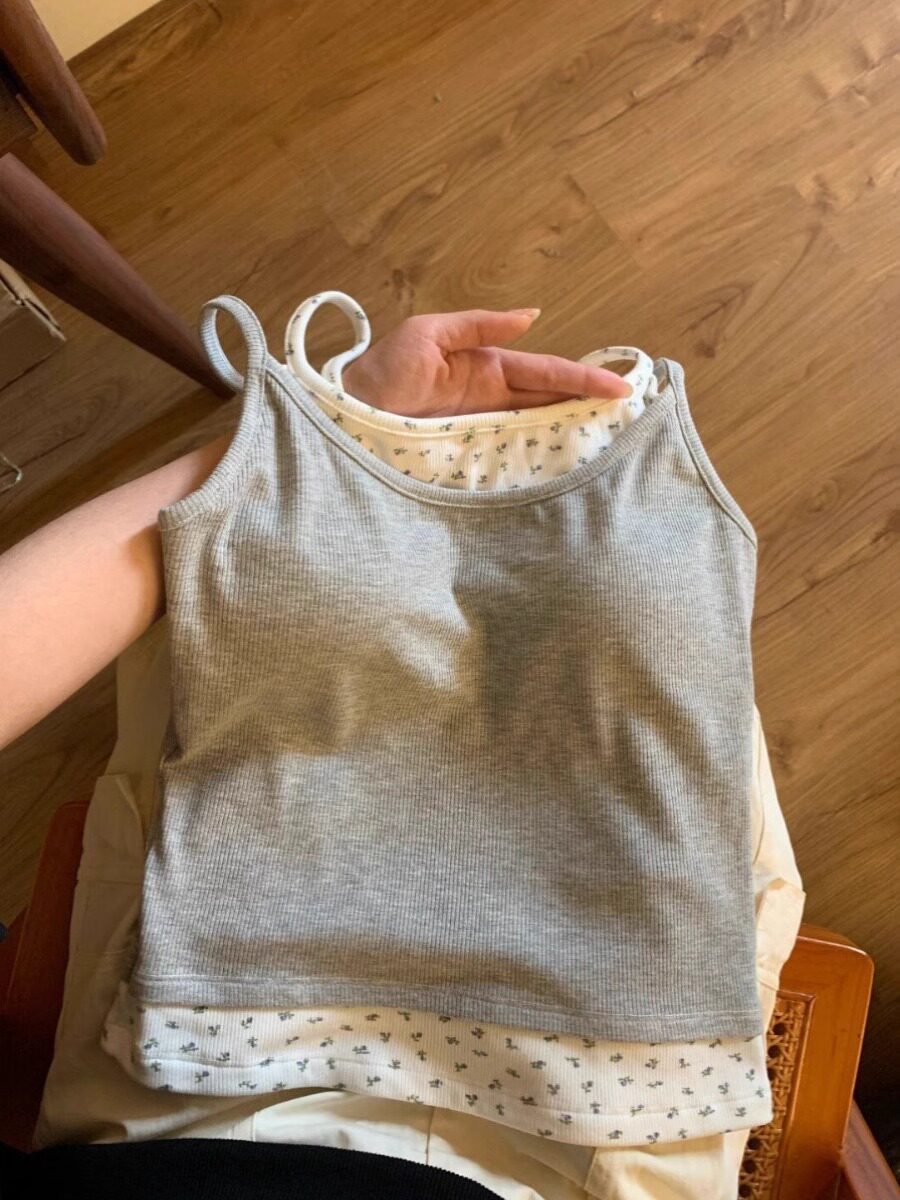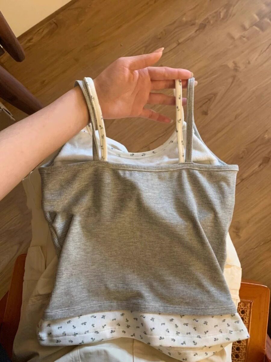 Комплект, летняя короткая дизайнерская базовая майка топ без рукавов, цветочный принт, тренд сезона