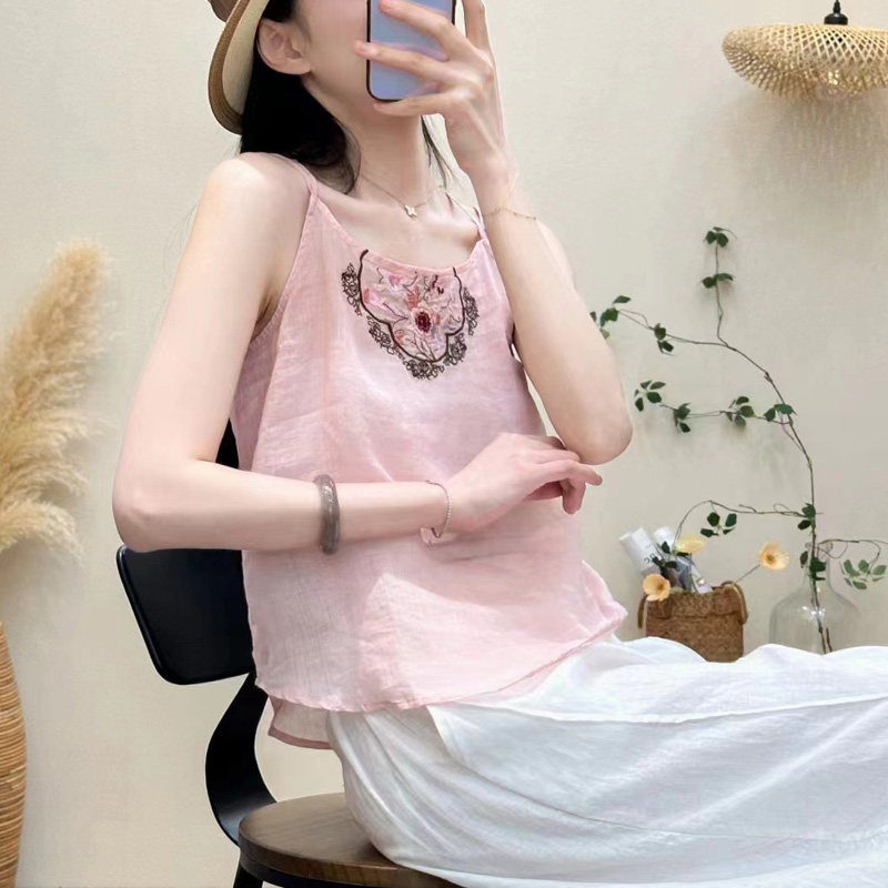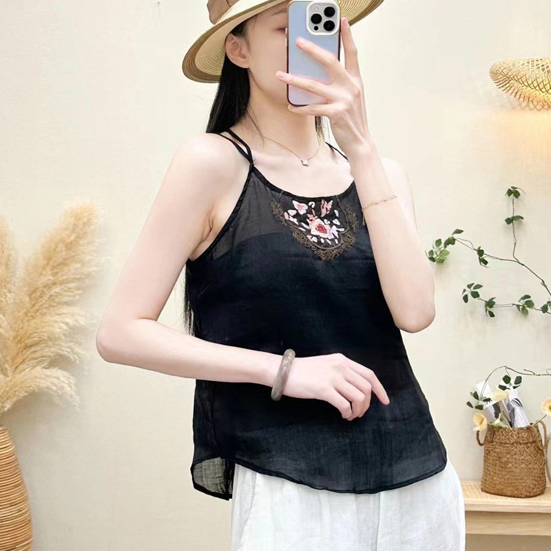 Летняя тонкая майка топ, китайский стиль, оверсайз