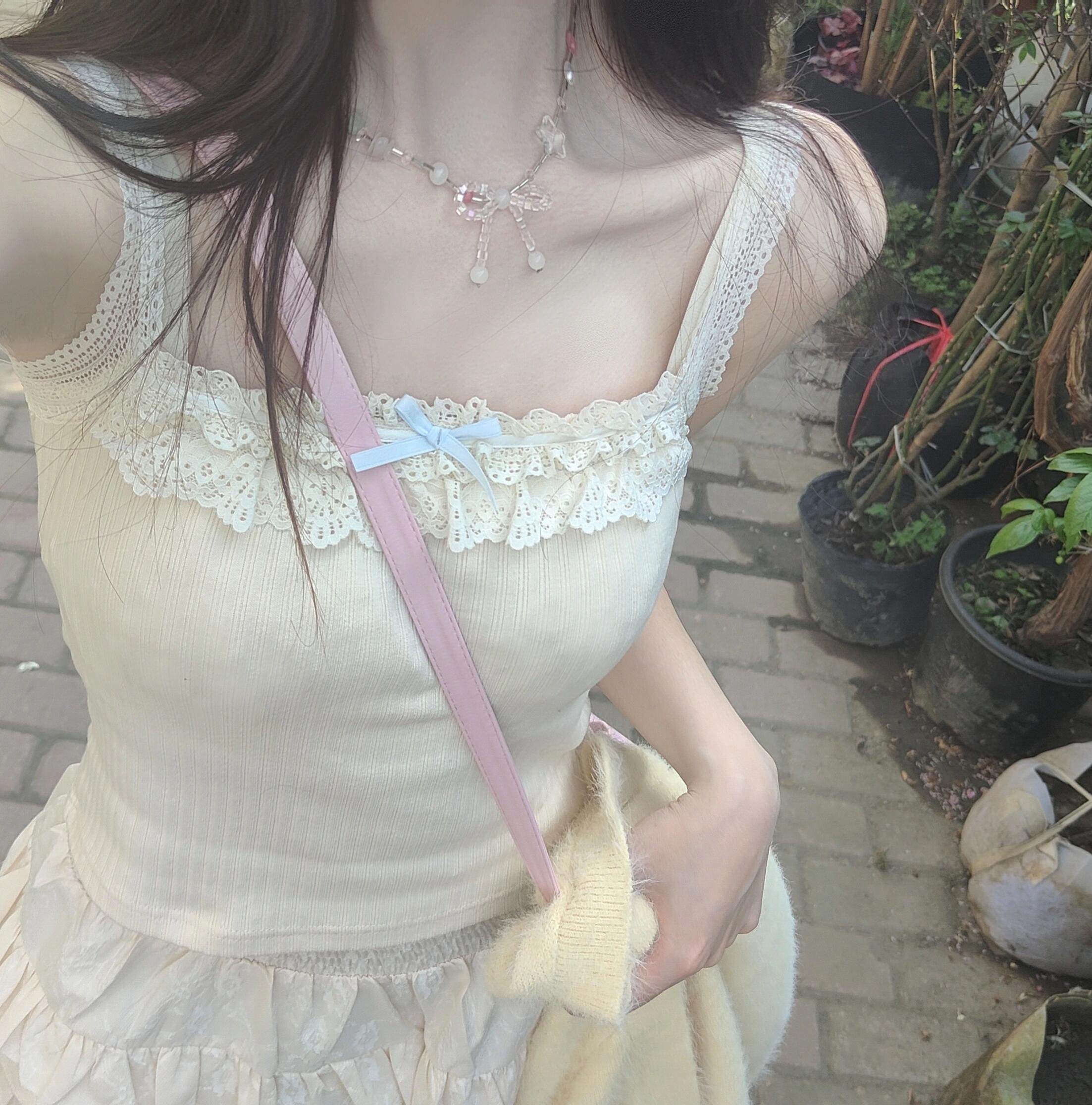 Кружевная базовая майка топ, облегающий крой