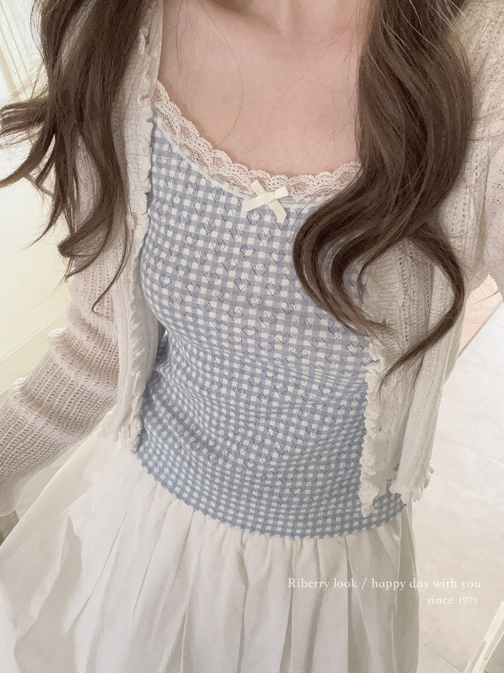Кружевое кружево, любовь в покое, многослойный внутренний слой, плед, базовый стиль, небольшая подвеска, синяя и белая клетка, U