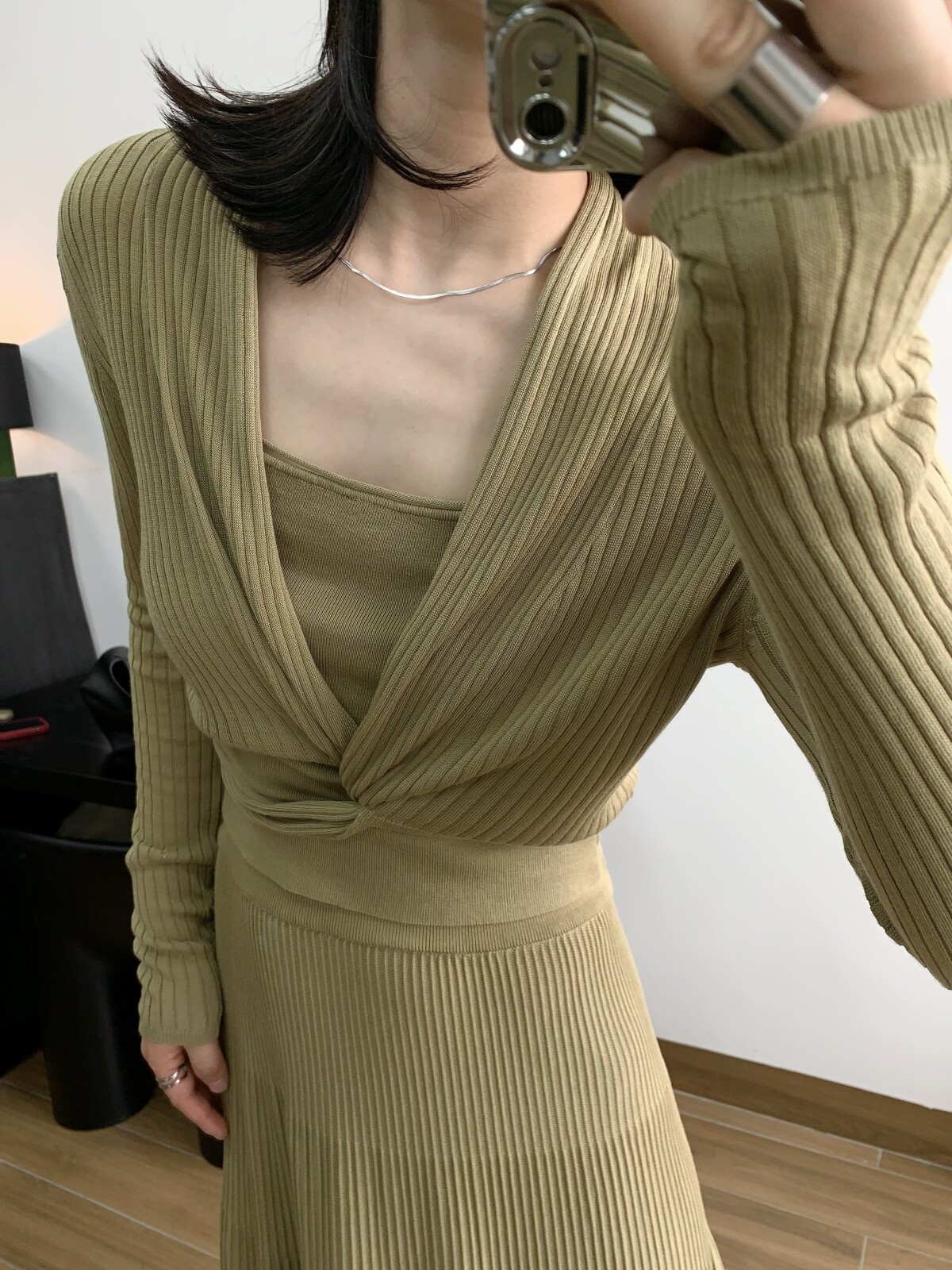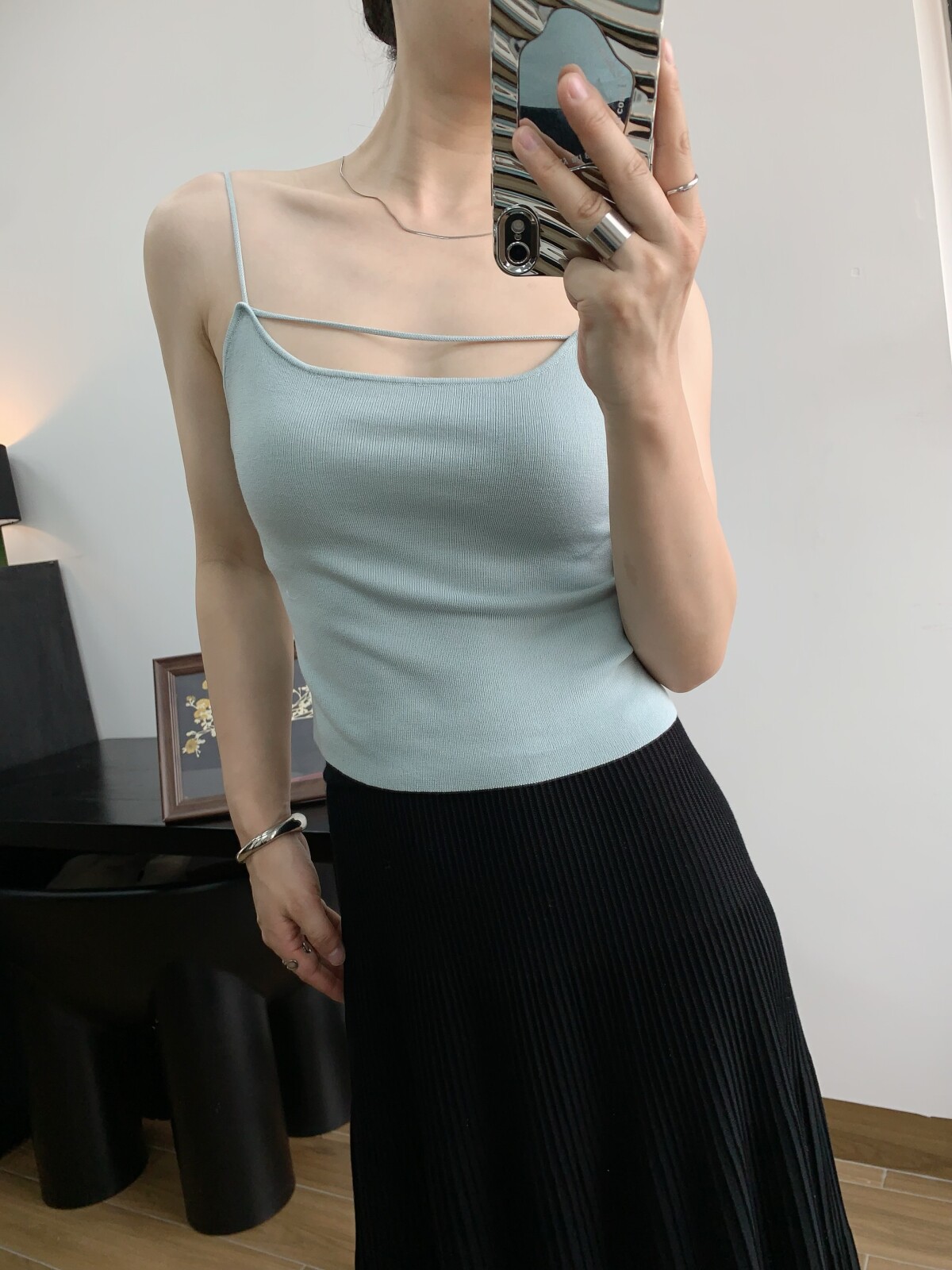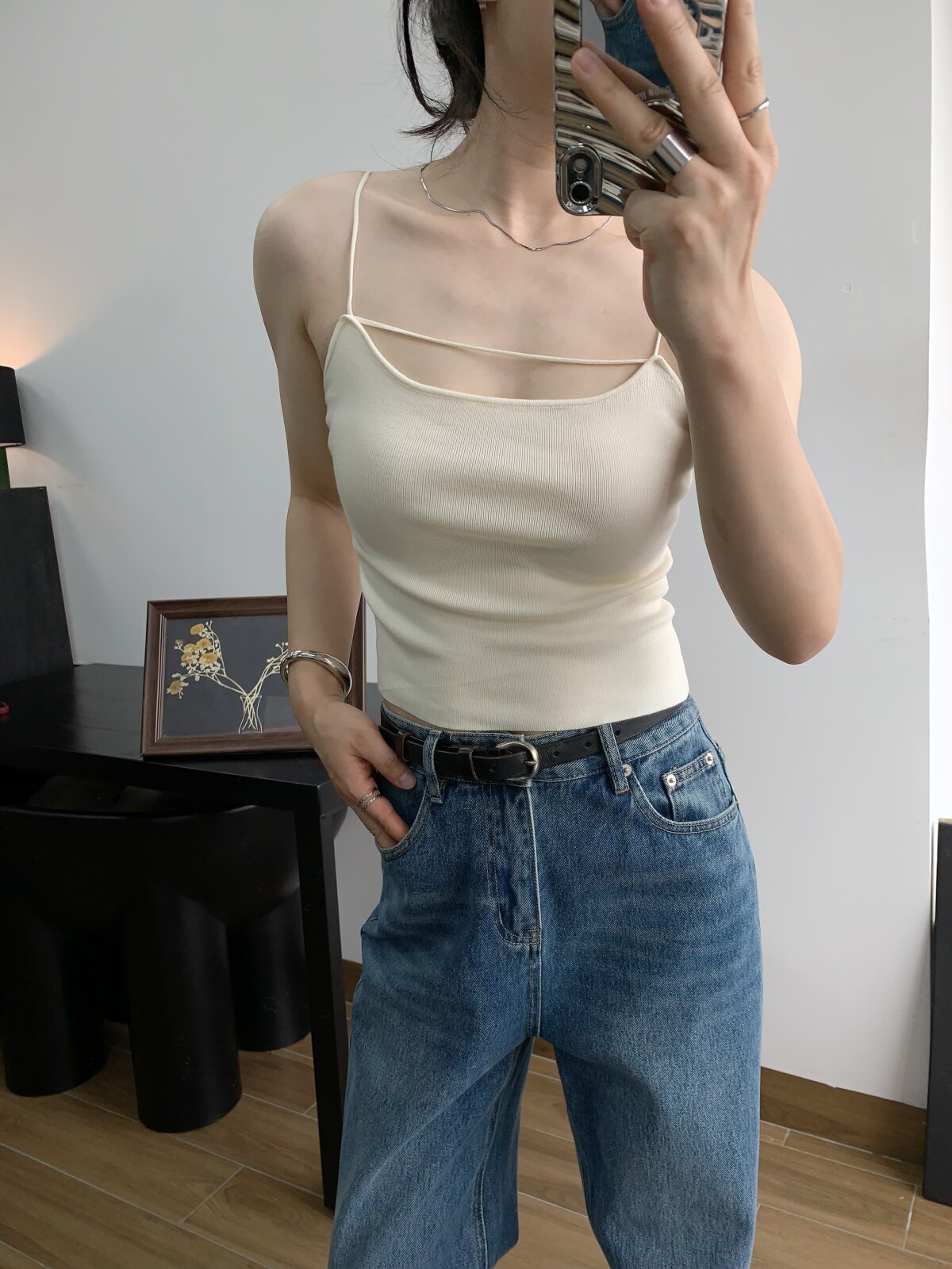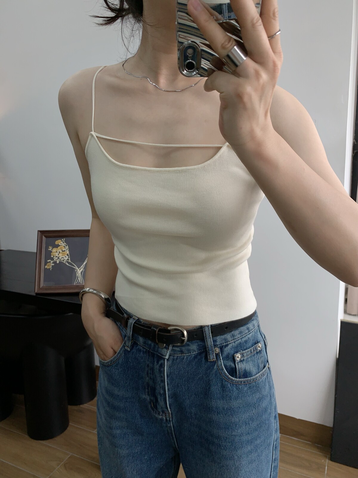 Абрикосовый трикотажный жилет, тонкая майка топ, комплект, красивая спина, эффект подтяжки