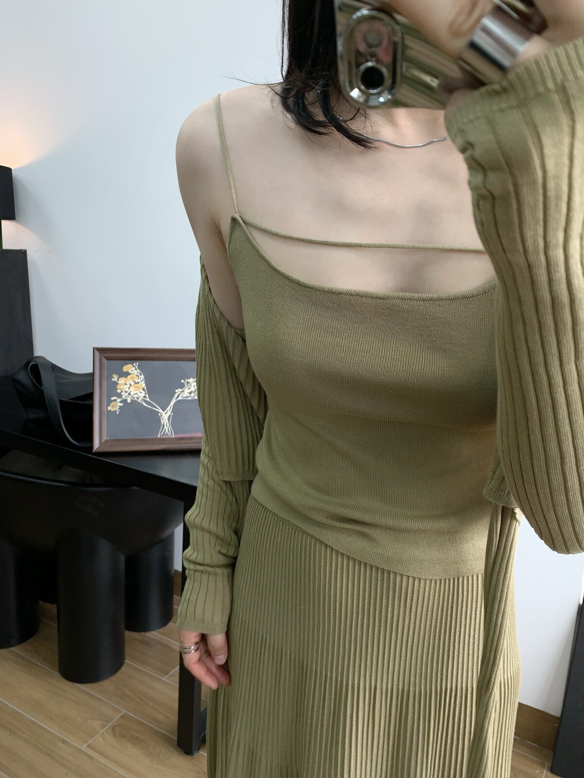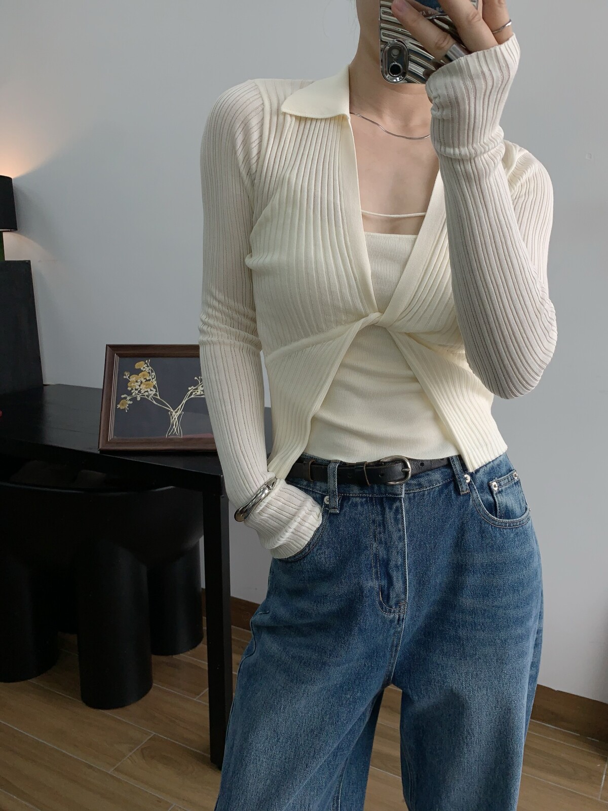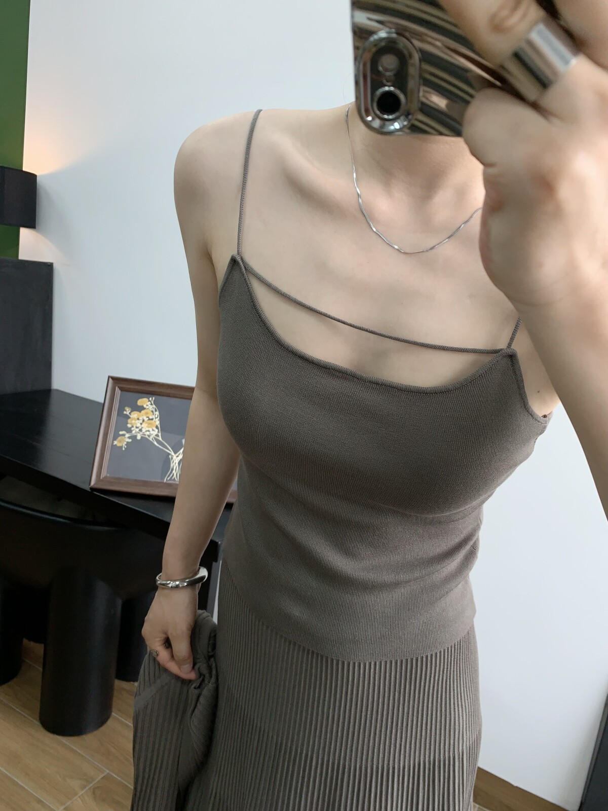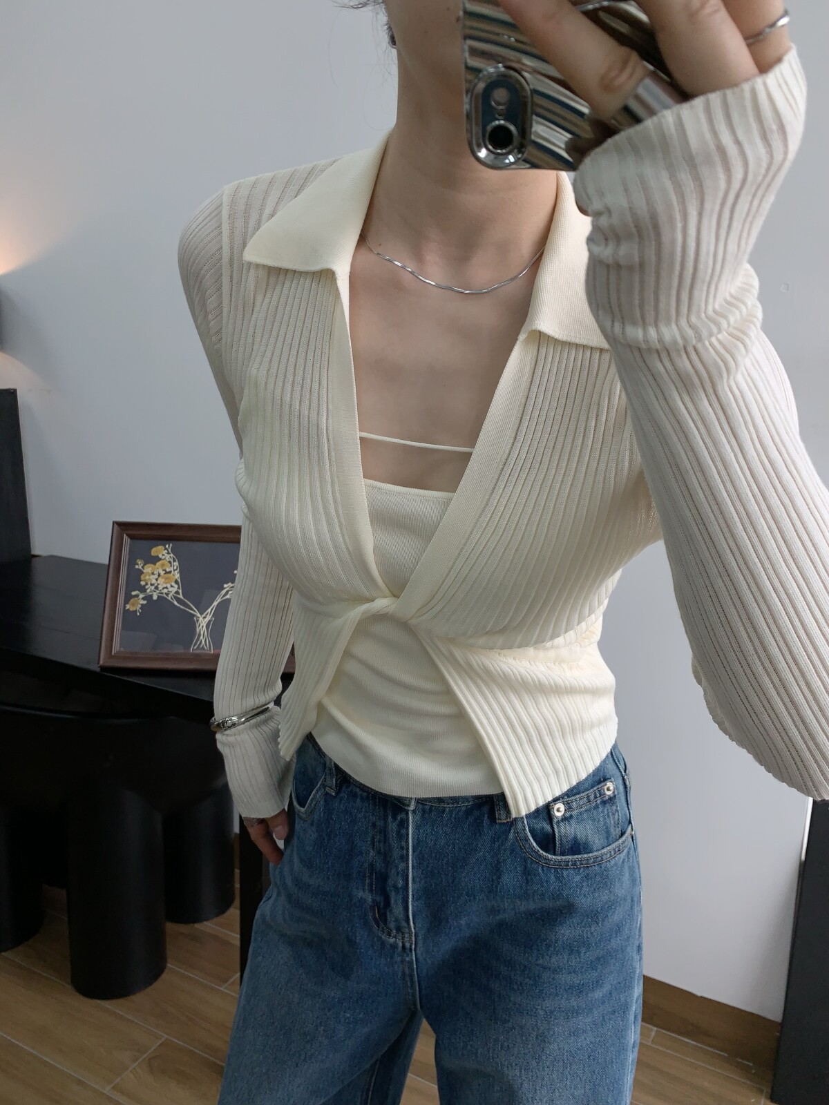 Абрикосовый трикотажный жилет, тонкая майка топ, комплект, красивая спина, эффект подтяжки