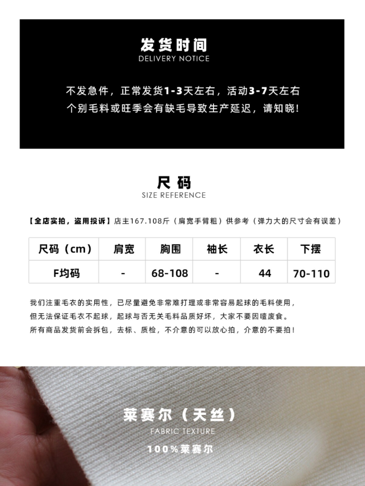 ЗТО / Снимать в спешке / Заказывайте с умом / Нормальная доставка1-3 дняо / Активность3-7 днейо В некоторых шерстяных материалах или в пиковые сезоны может возникнуть нехватка шерсти, что приведет к задержкам производства / обратите внимание. |