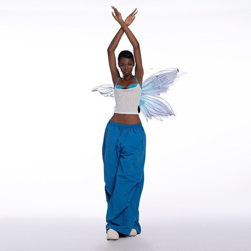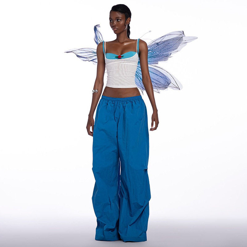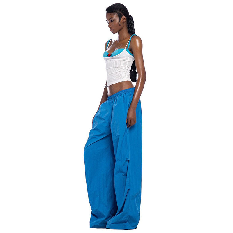 Небольшой дизайнерский сексуальный топ с чашечками, синий комплект, штаны, свободный крой