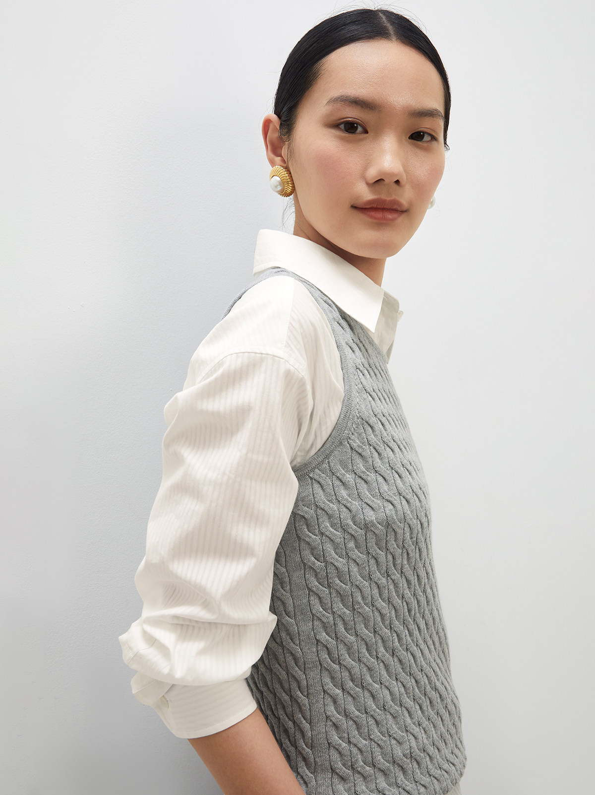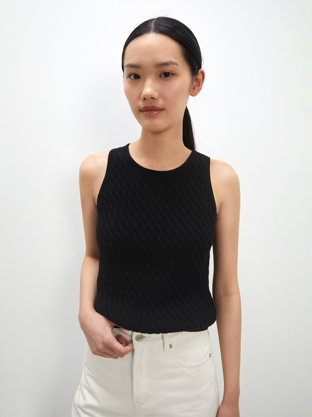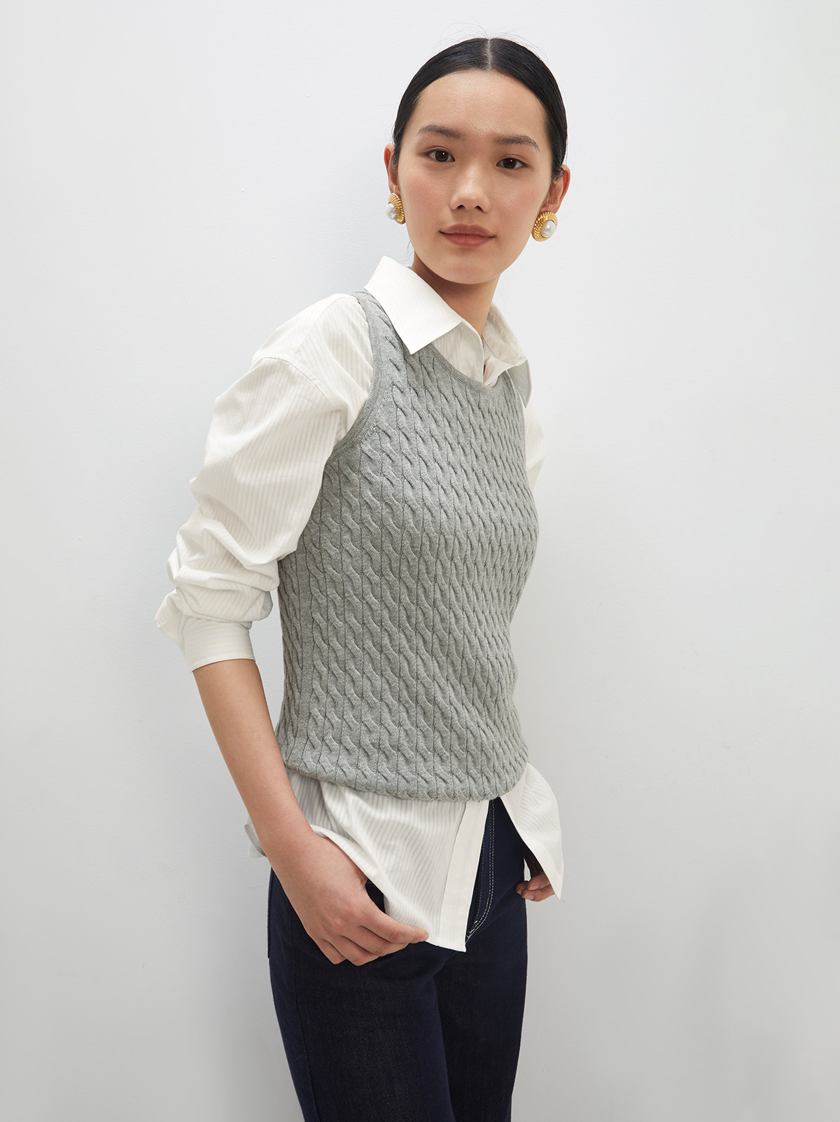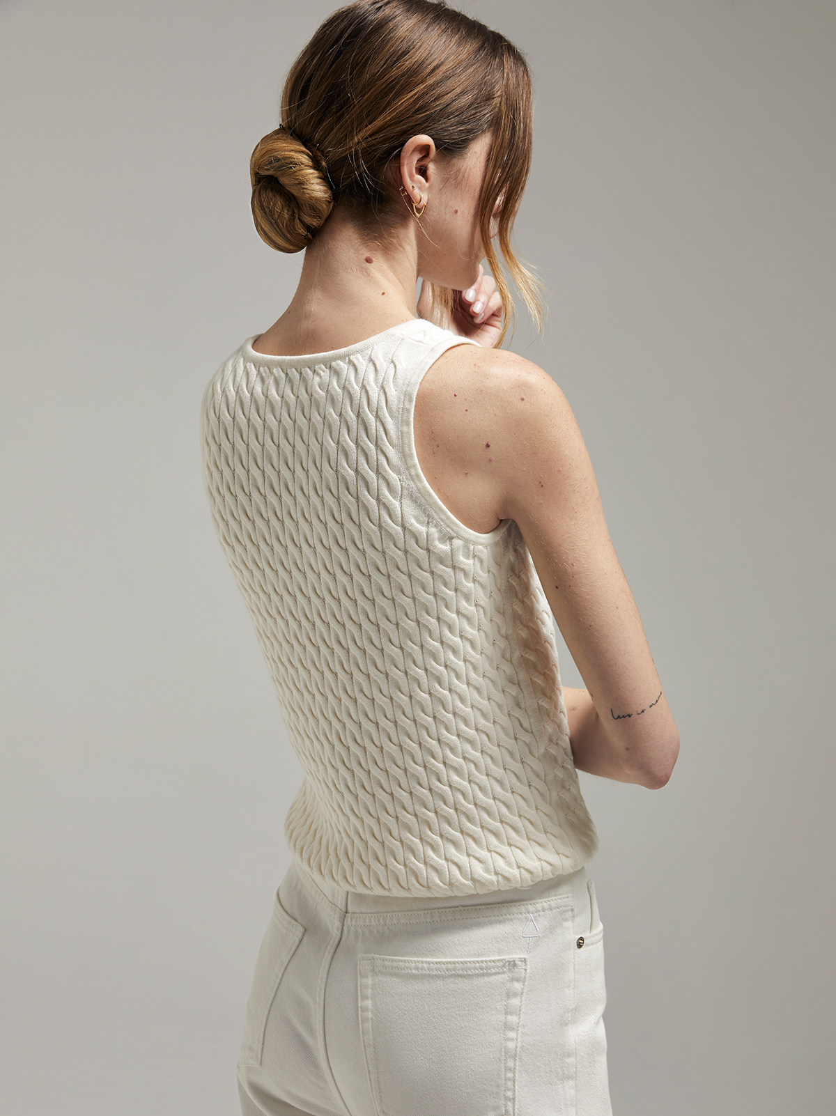 Andrea Tang Кашемировый трикотажный жилет без рукавов, из хлопка и льна