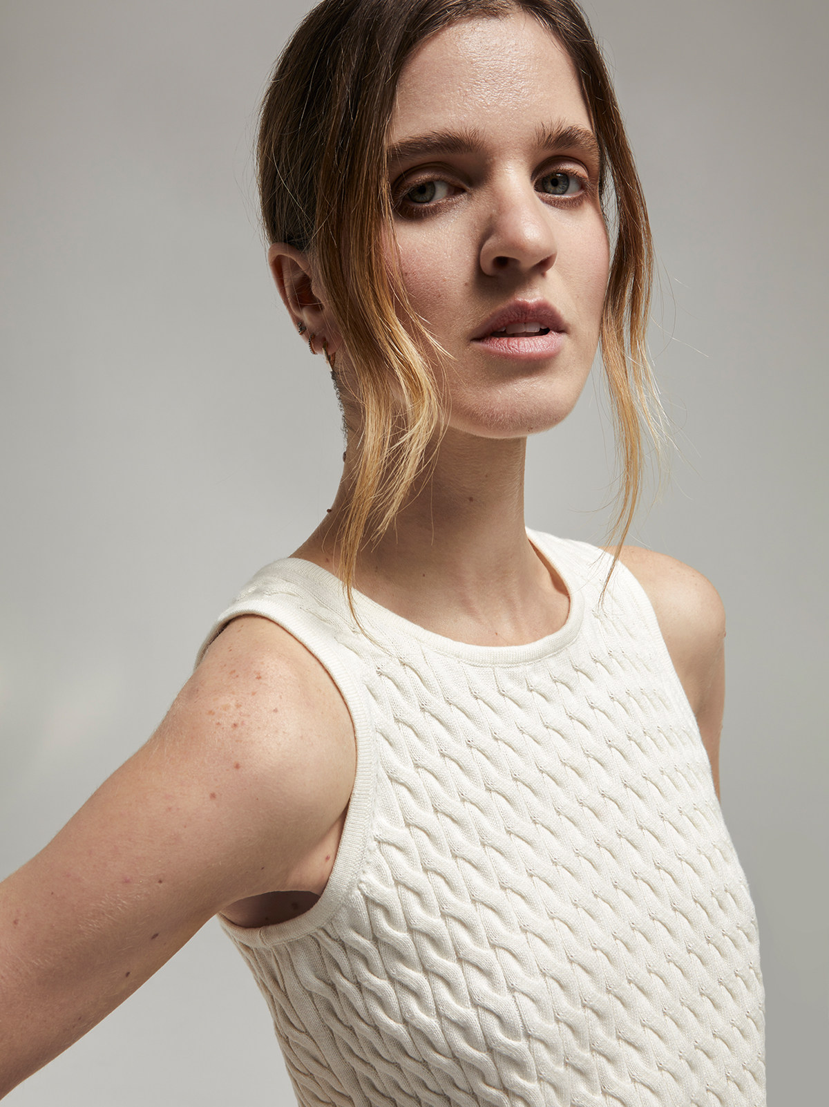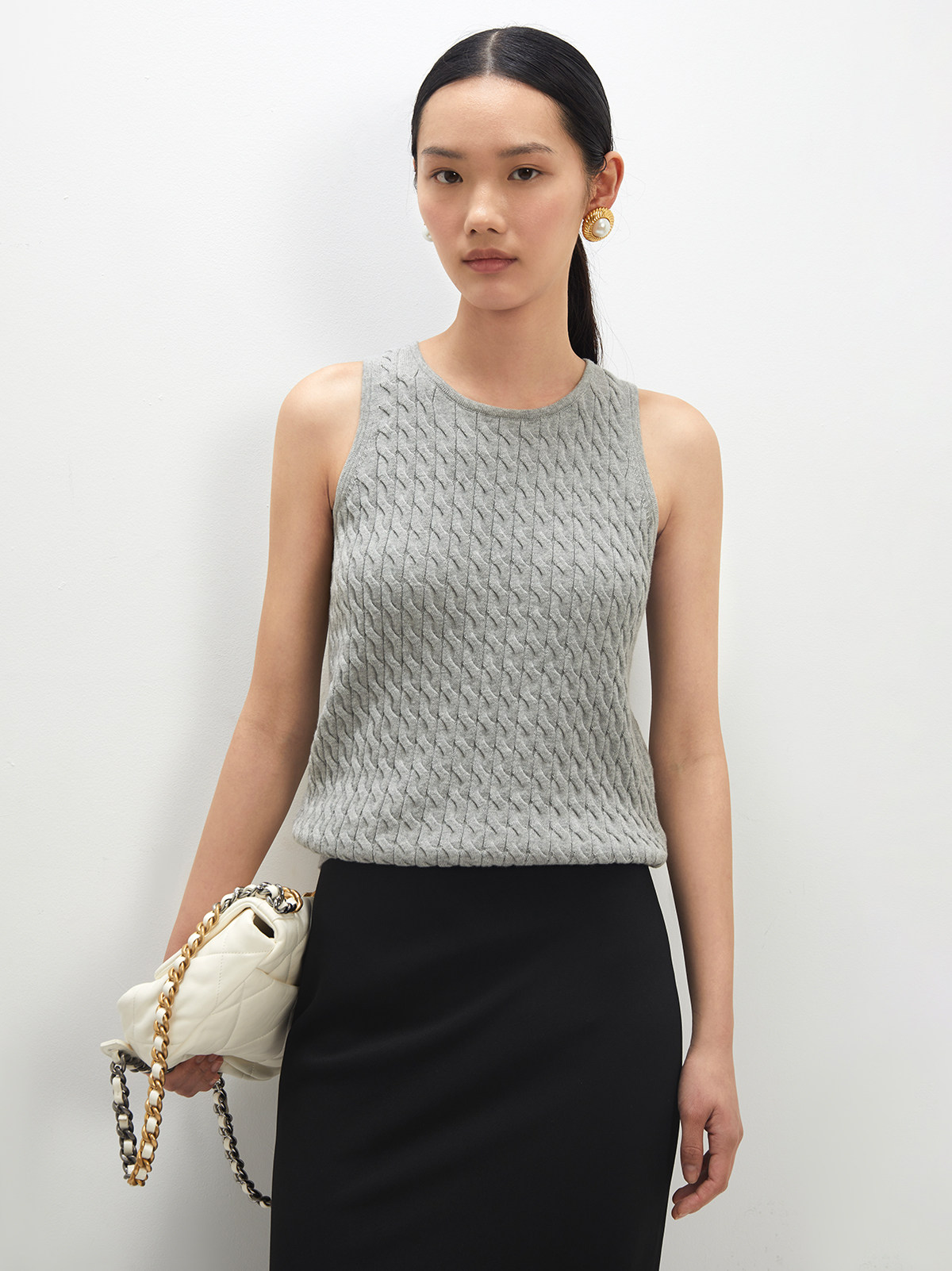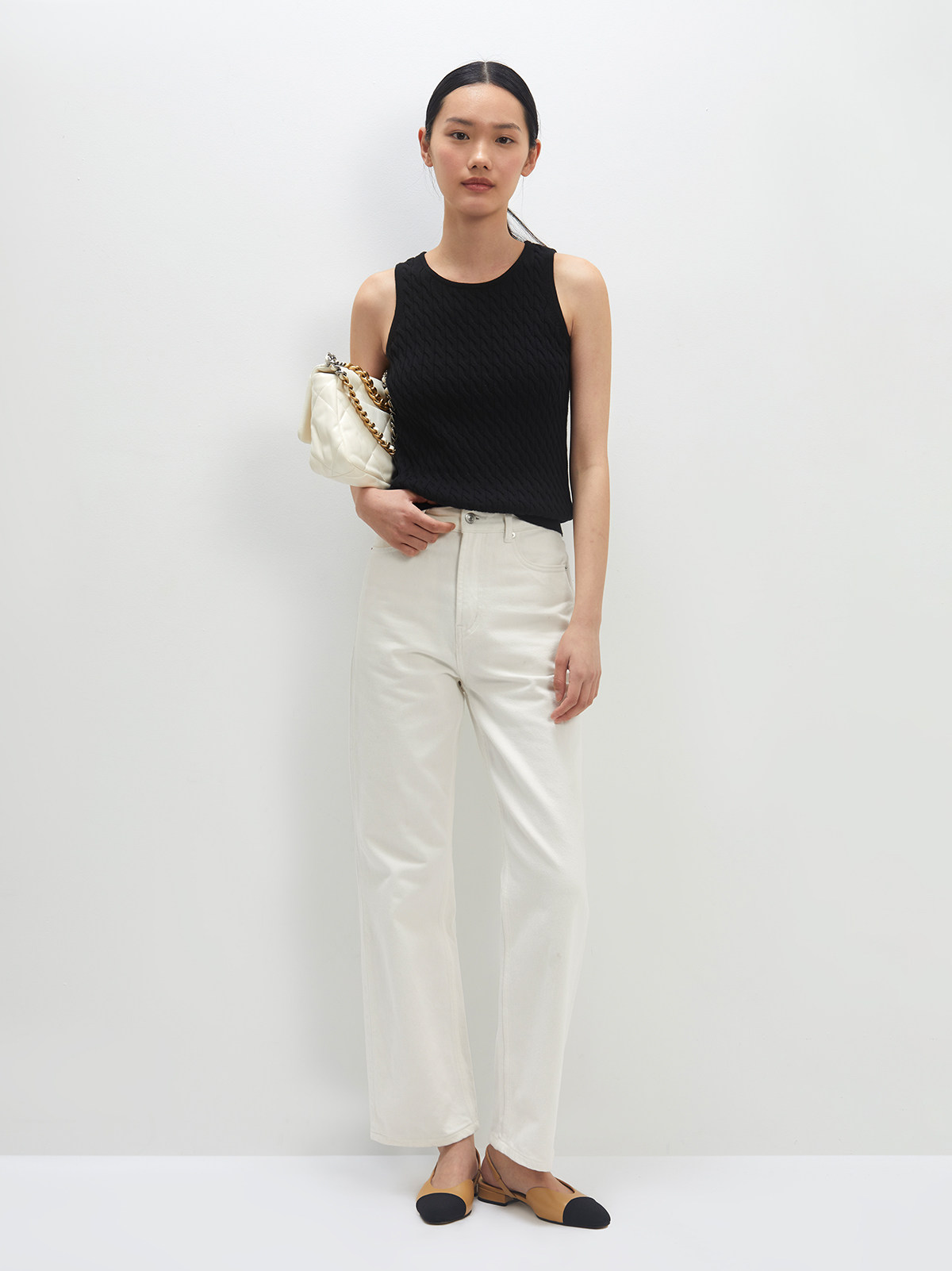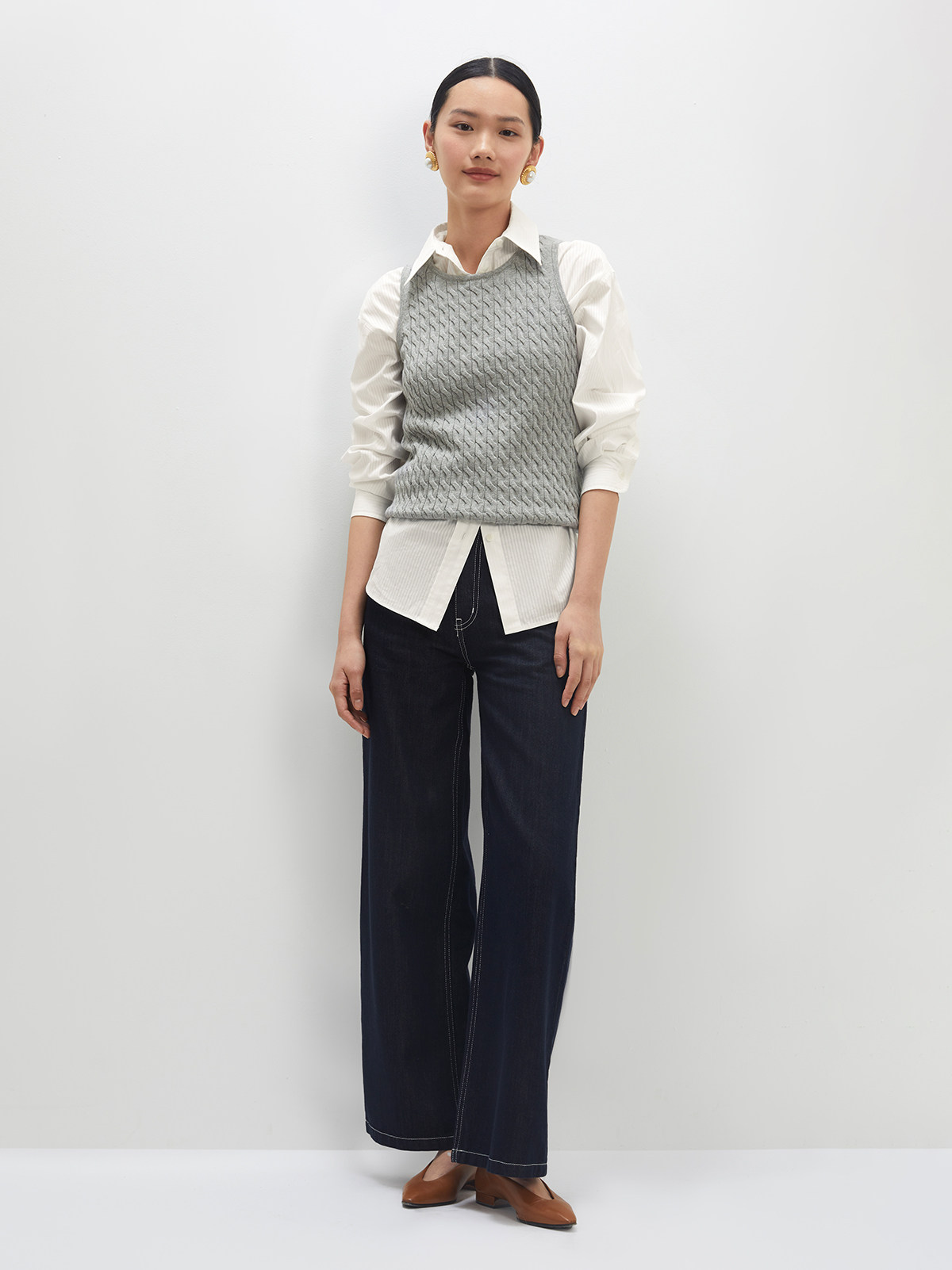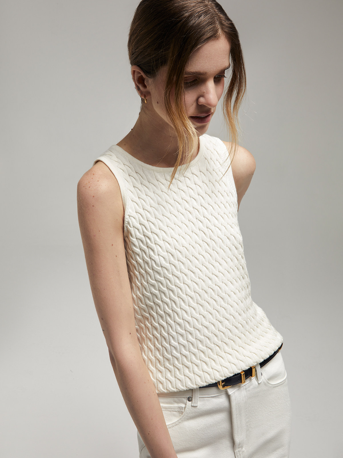 Andrea Tang Кашемировый трикотажный жилет без рукавов, из хлопка и льна