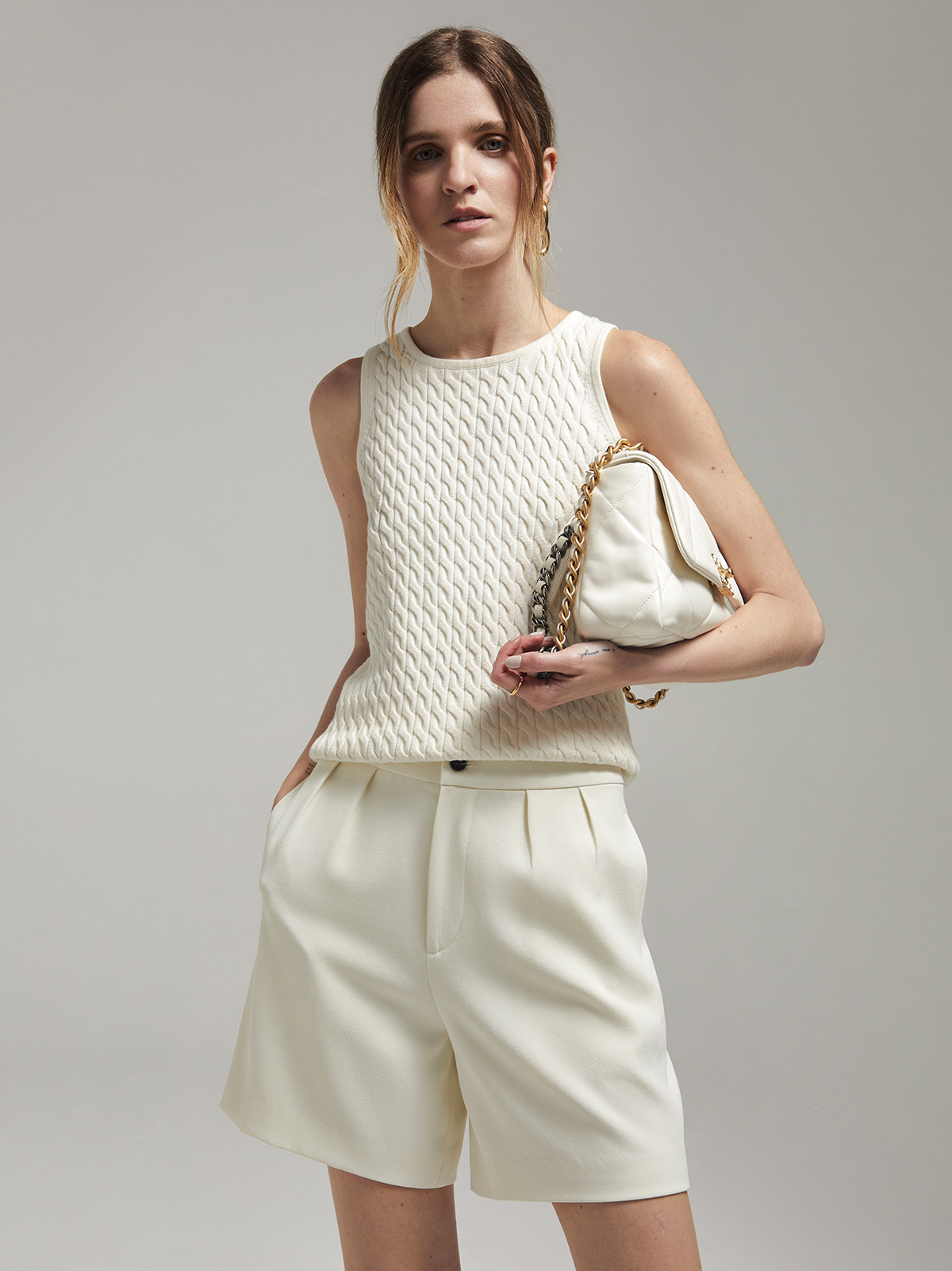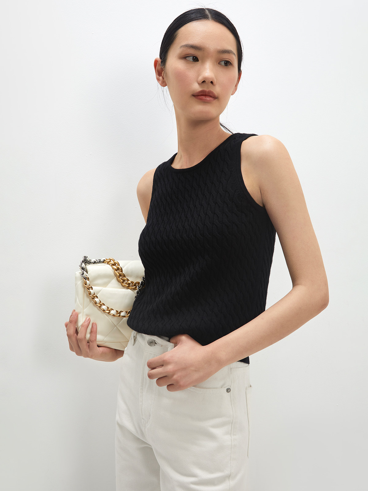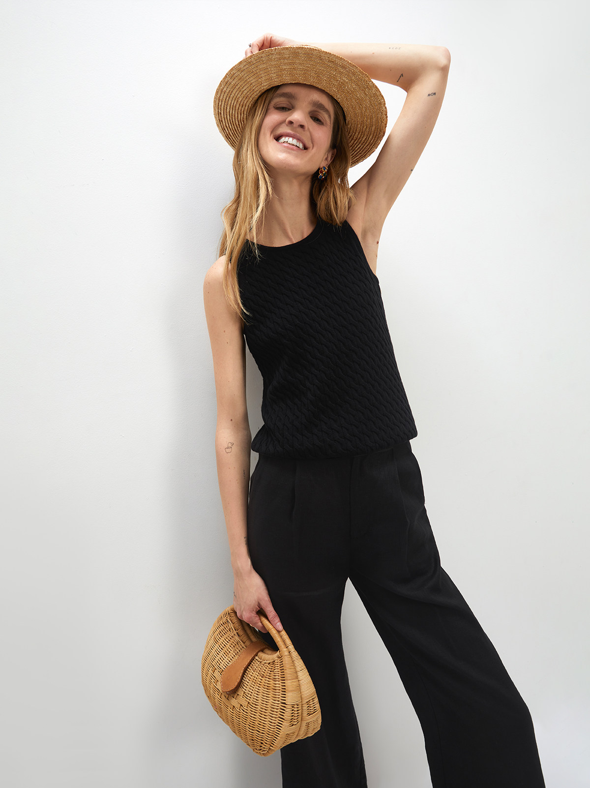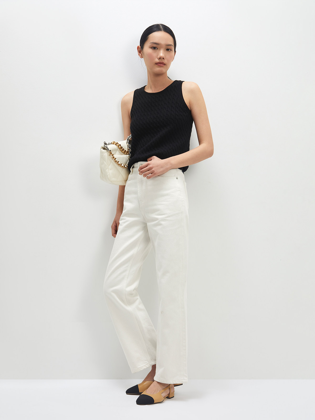Andrea Tang Кашемировый трикотажный жилет без рукавов, из хлопка и льна