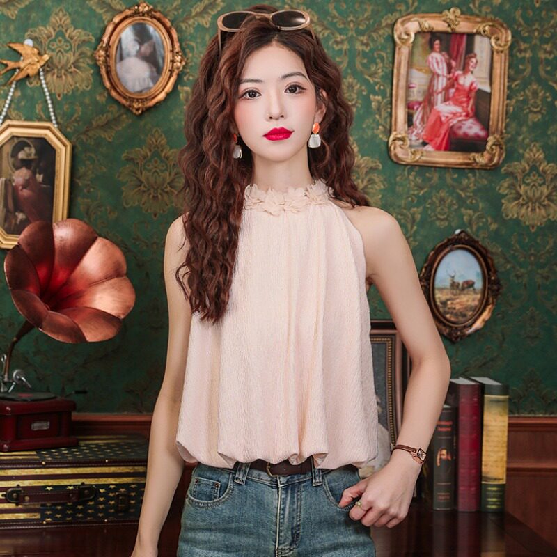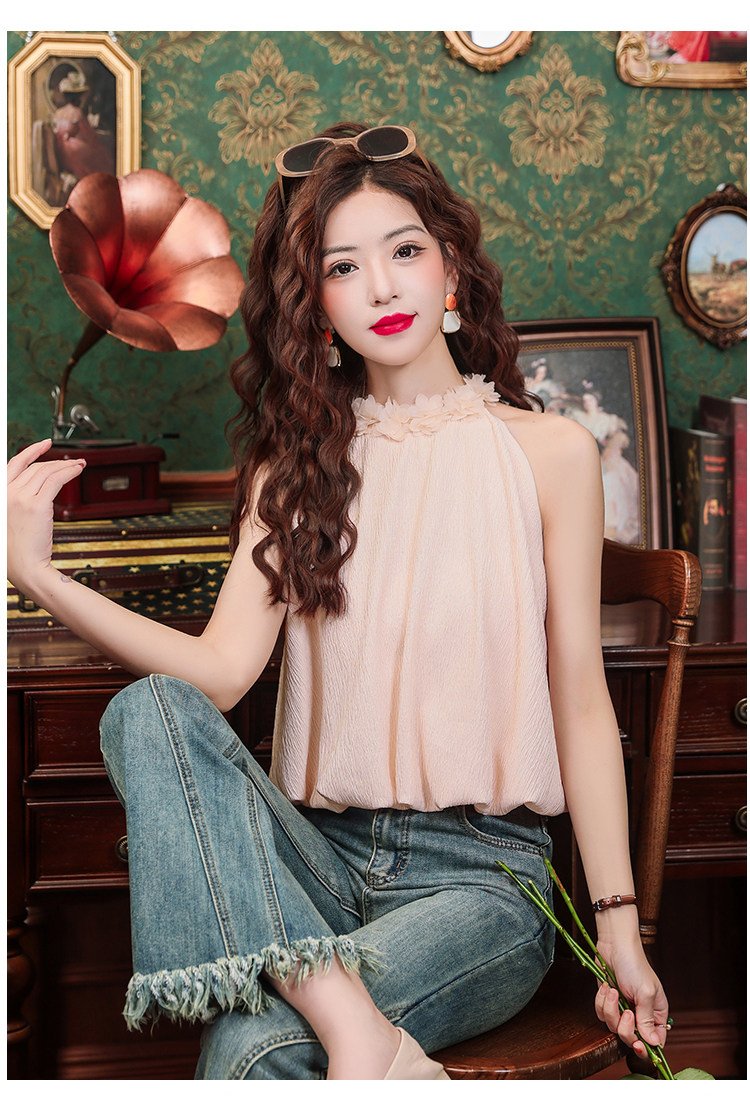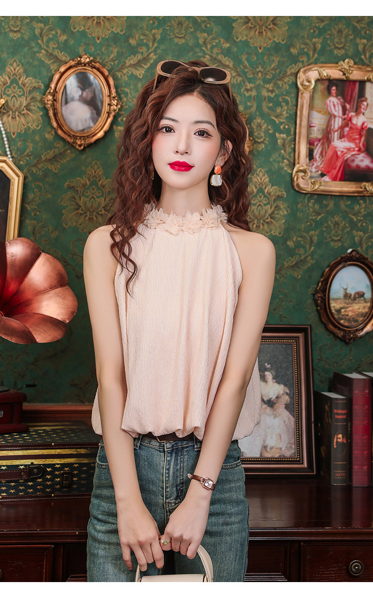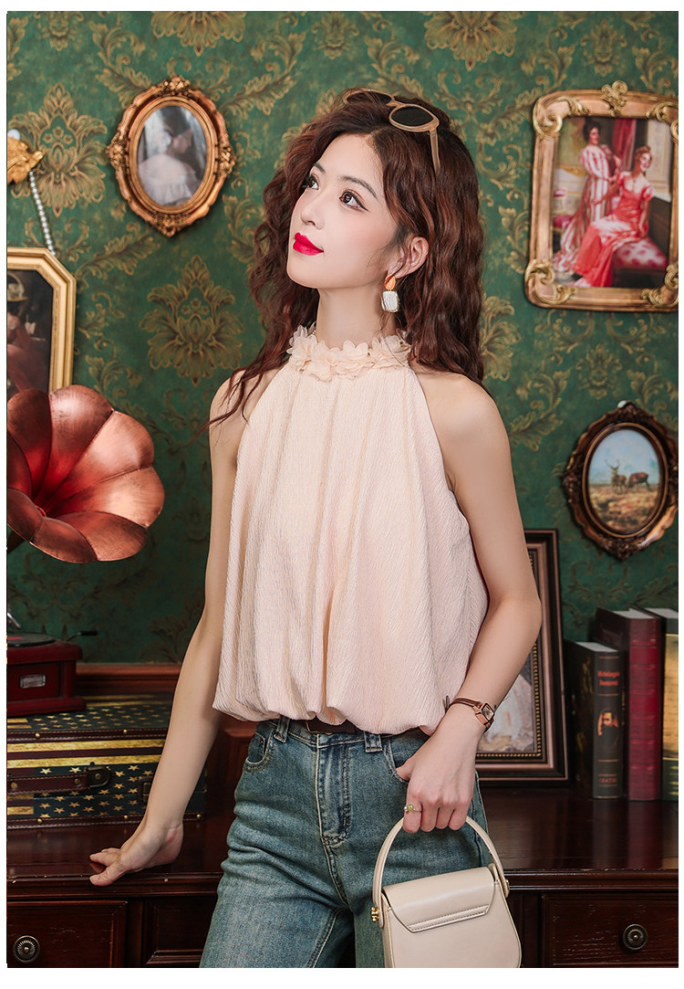 Розовый шифоновый летний топ с чашечками без рукавов, в цветочек, для маленькой груди