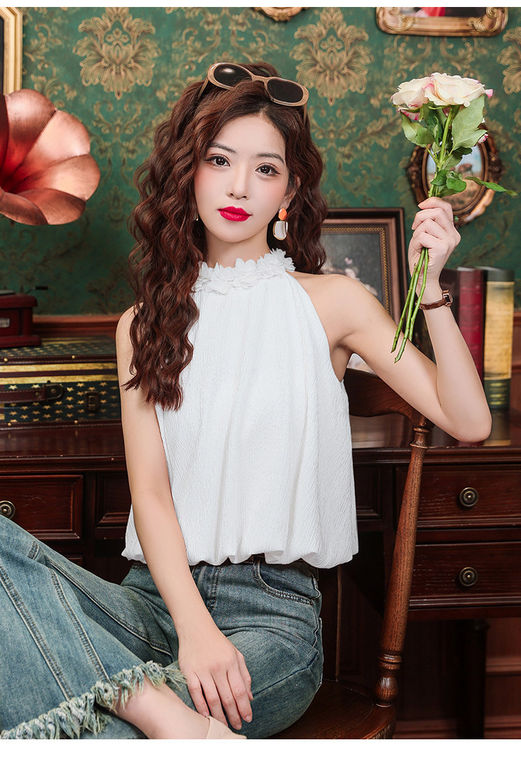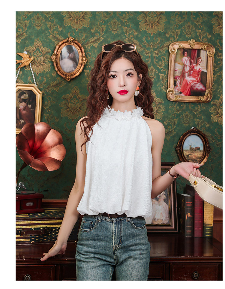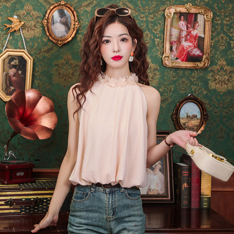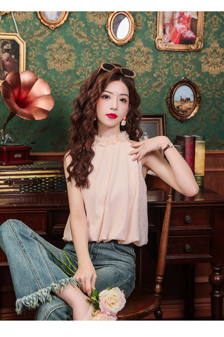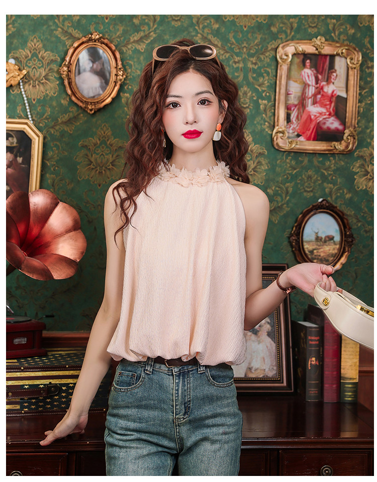 Розовый шифоновый летний топ с чашечками без рукавов, в цветочек, для маленькой груди