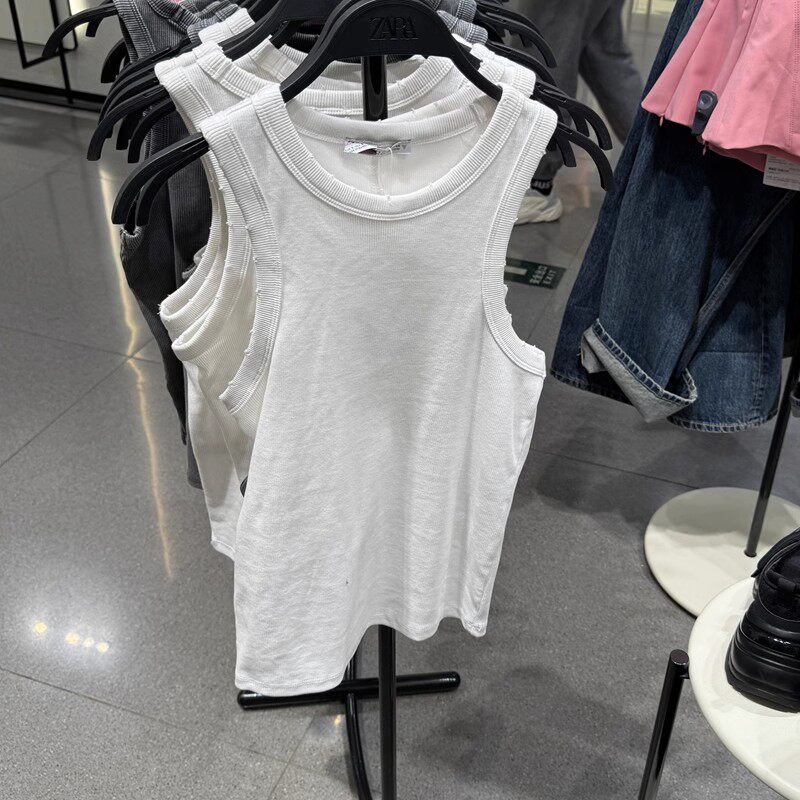 Новая женская футболка-жилет в рубчик с эффектом потертости и пряностей 3253310 802