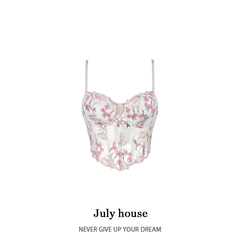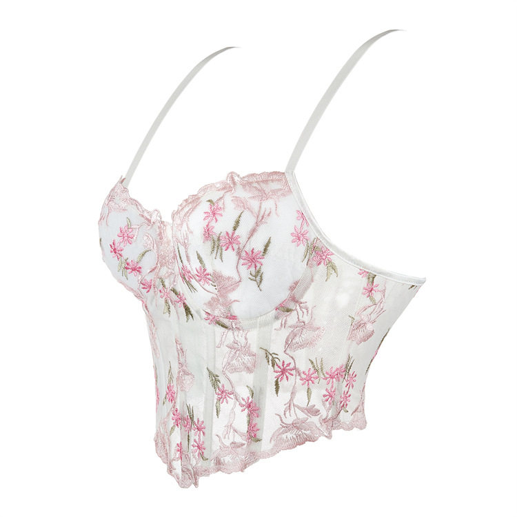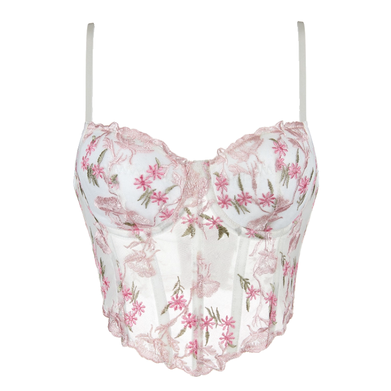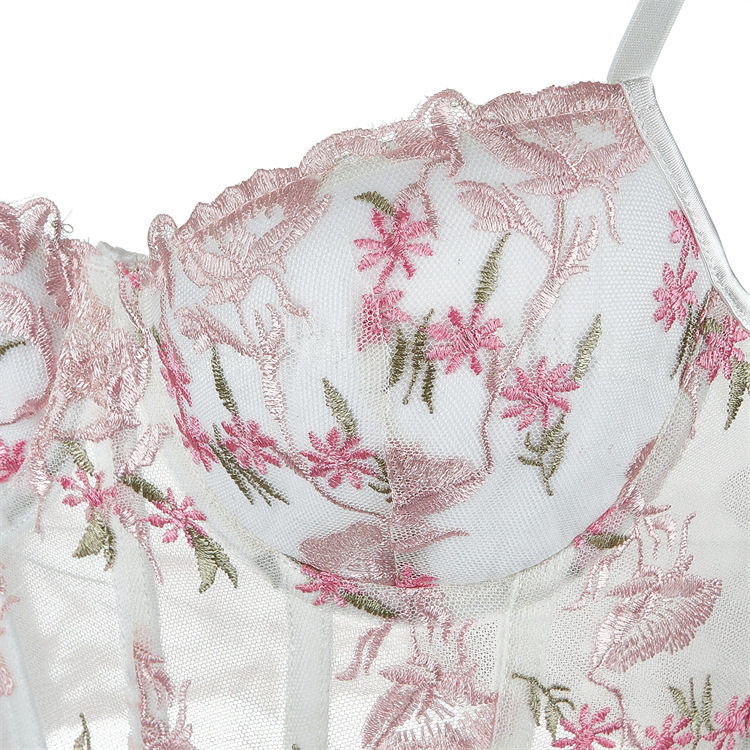 Летний сексуальный топ с чашечками, корсет, с вышивкой, в цветочек