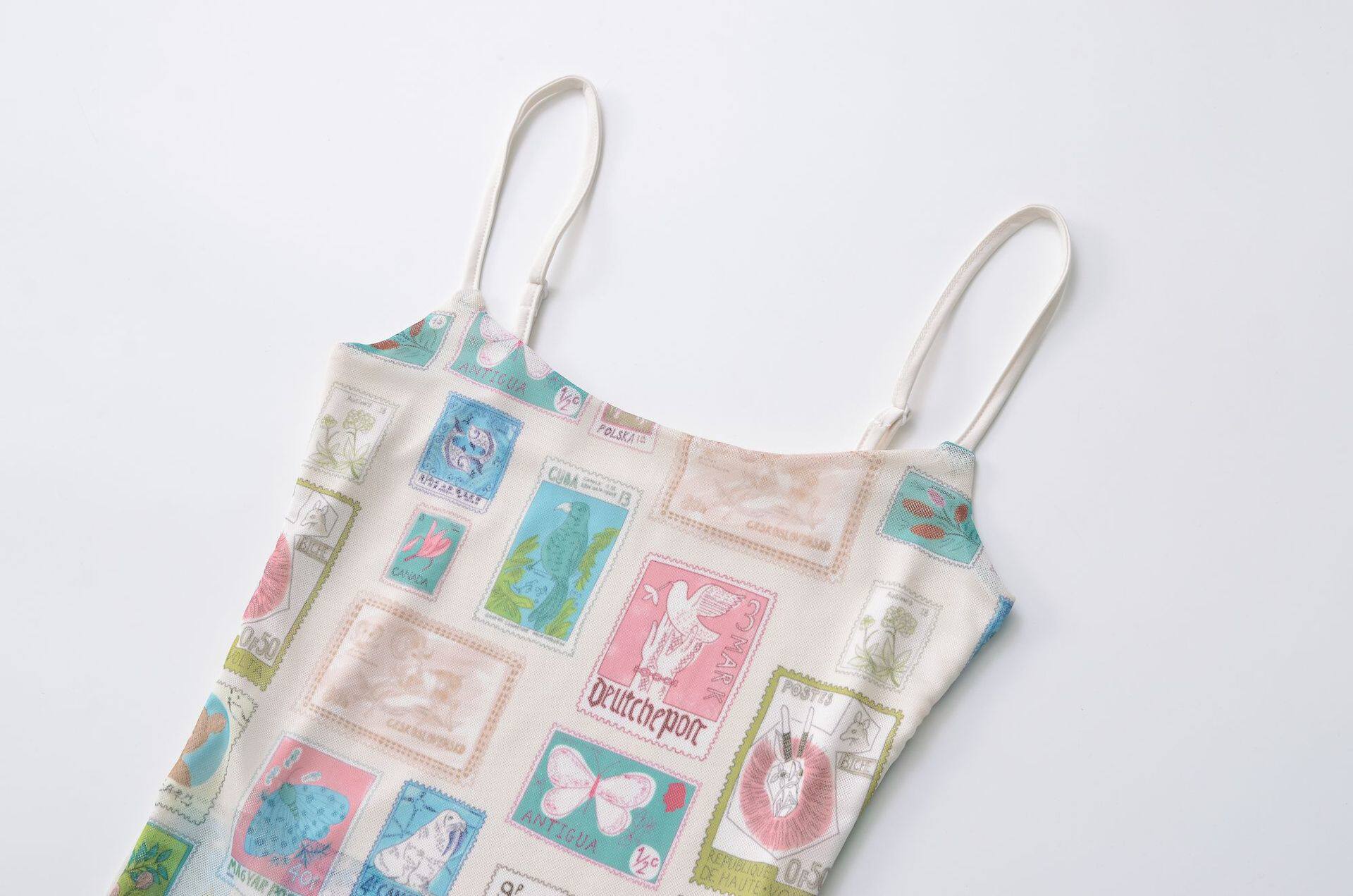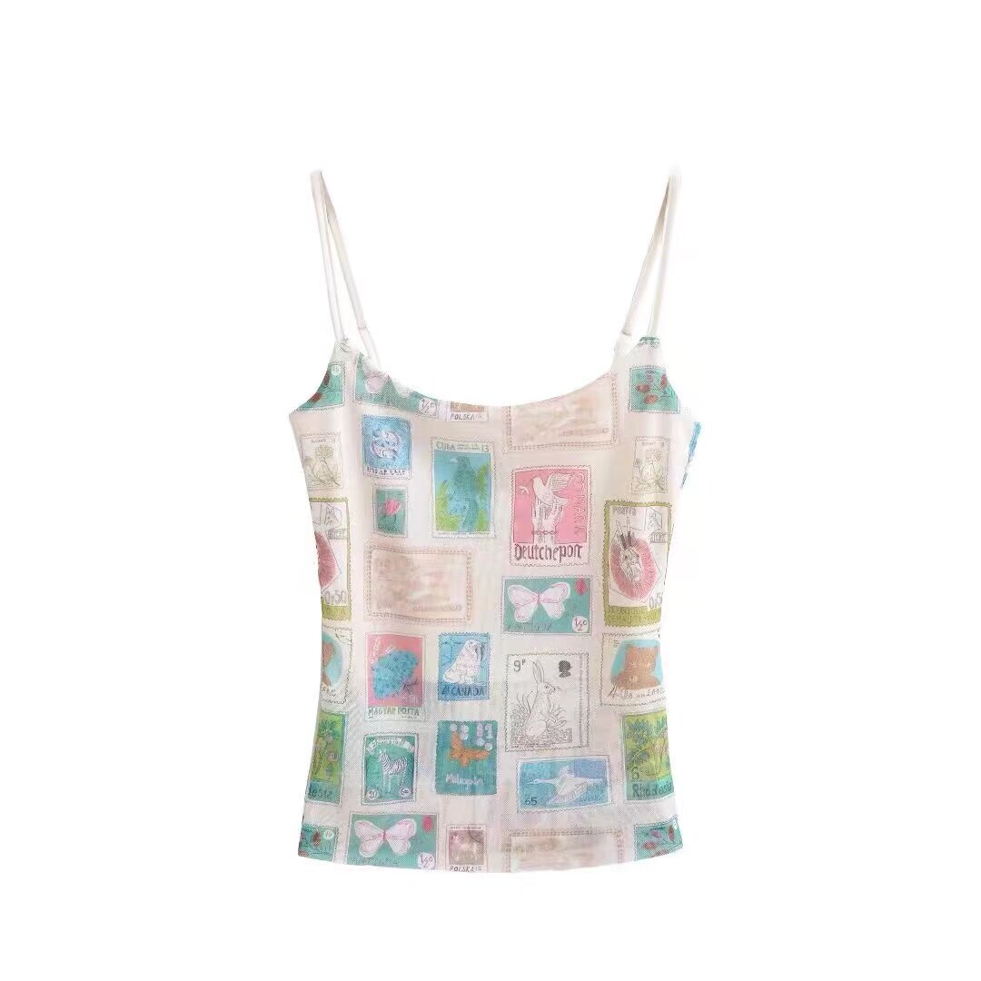 Мультяшная небольшая дизайнерская майка топ, в американском стиле, в цветочек, тренд сезона