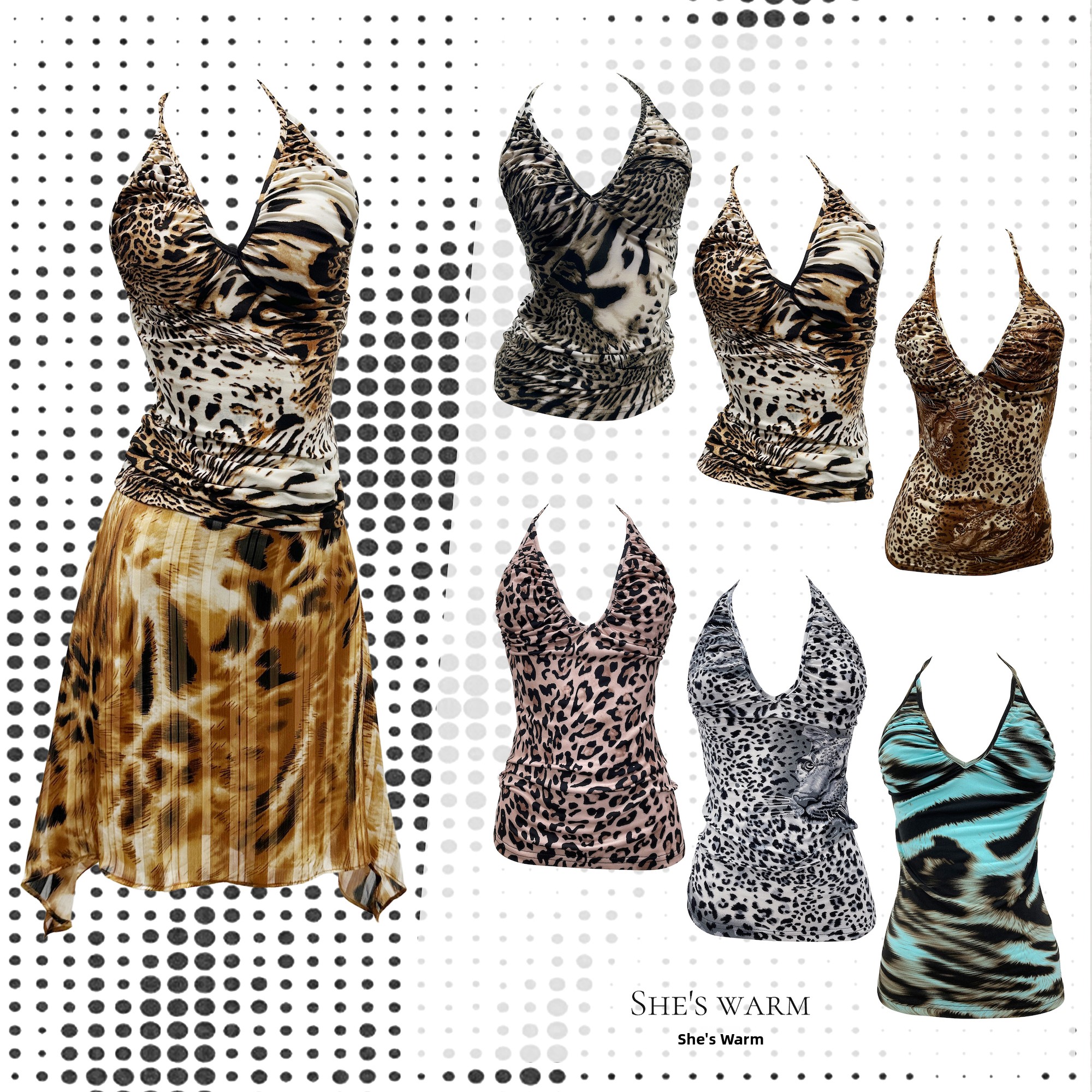 Сексуальная плиссированная майка с леопардовым принтом в стиле «тысячелетия» и «раннего тысячелетия» в раннем корейском стиле в стиле ретро Сибуя