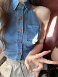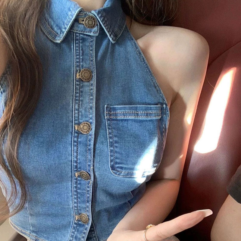 Ретро сексуальная джинсовая летняя дизайнерская короткая майка топ, тренд сезона