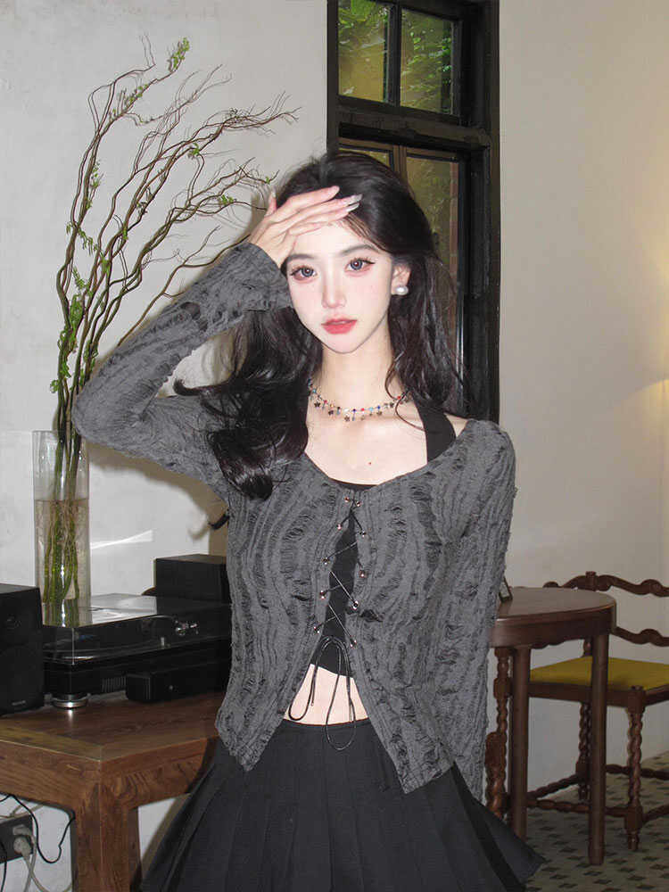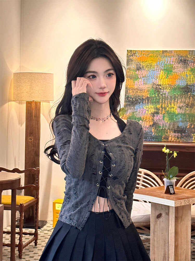 Ретро дизайнерская майка топ, ремень, комплект, лонгслив, в американском стиле, тренд сезона, облегающий крой