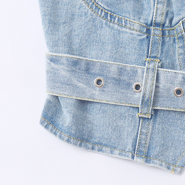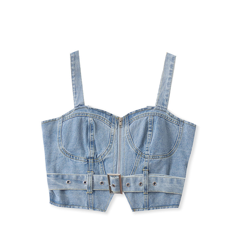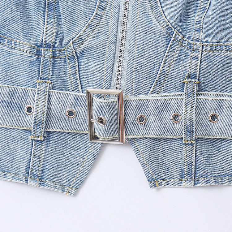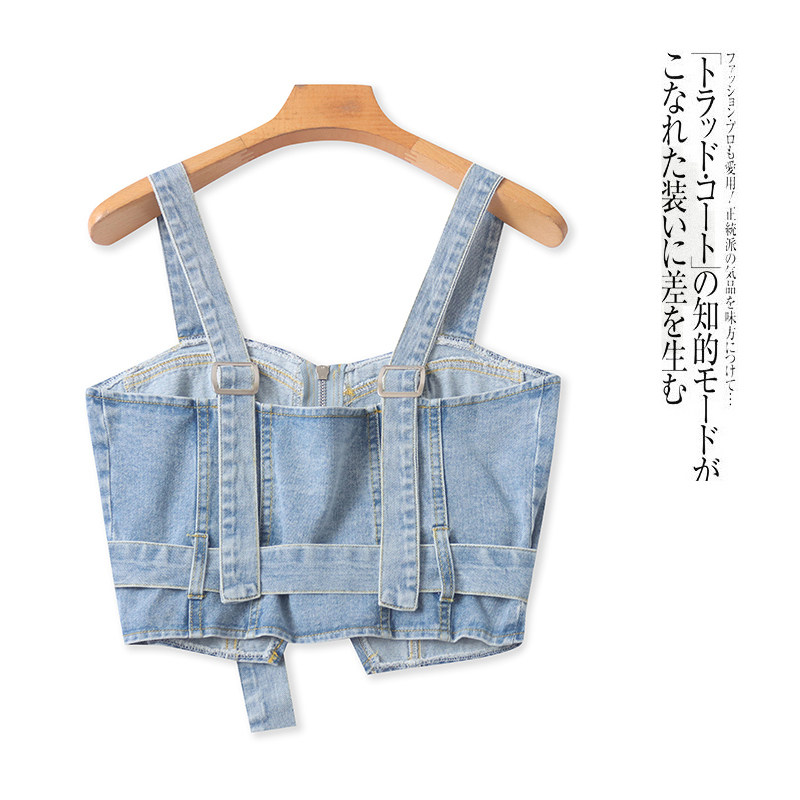 (Трансграничная торговля), джинсовый осенний жилет, короткий ремень с молнией, модные подтяжки, облегающий крой