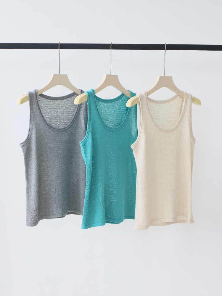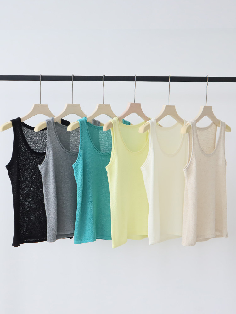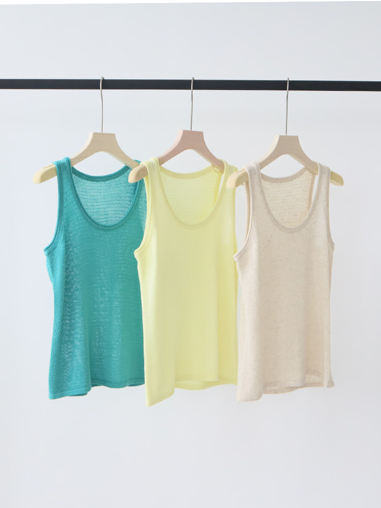 Летний трикотажный жилет с круглым воротником без рукавов, свободный крой