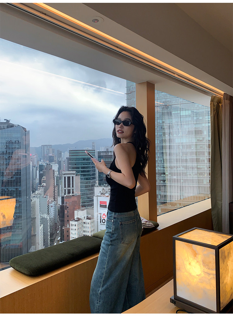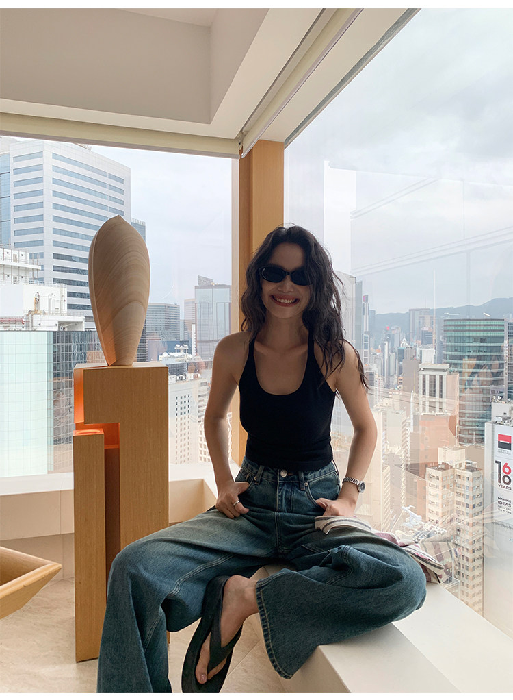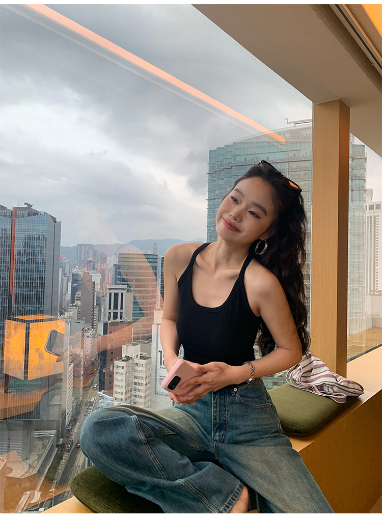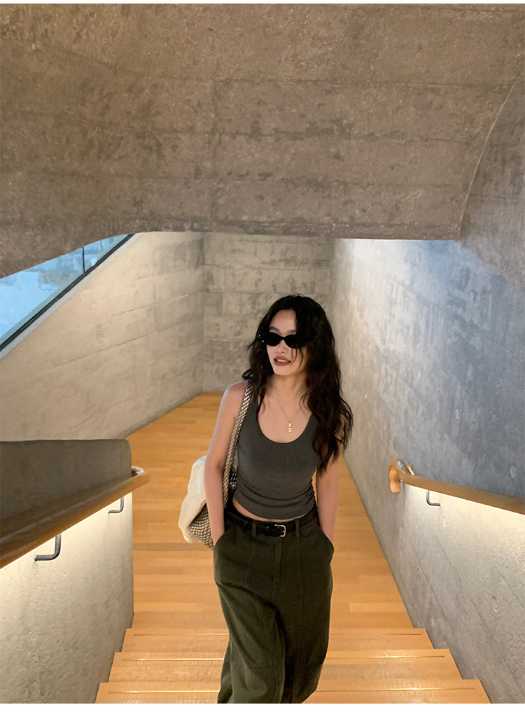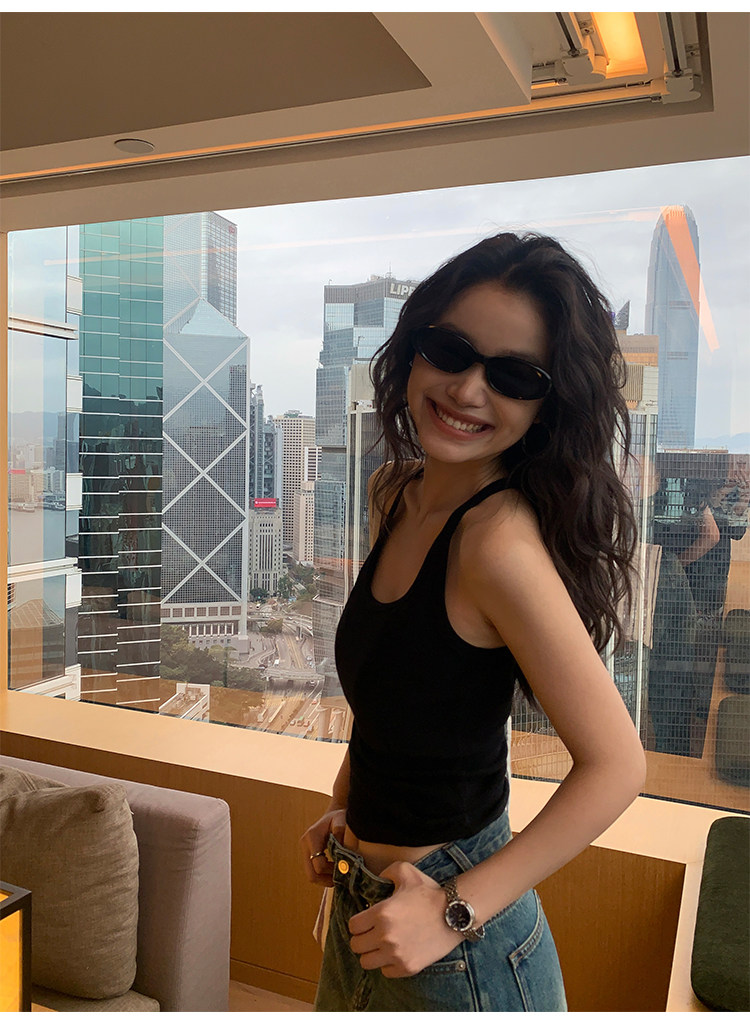 pusumede Топ с чашечками, черная трикотажная майка топ, облегающий крой