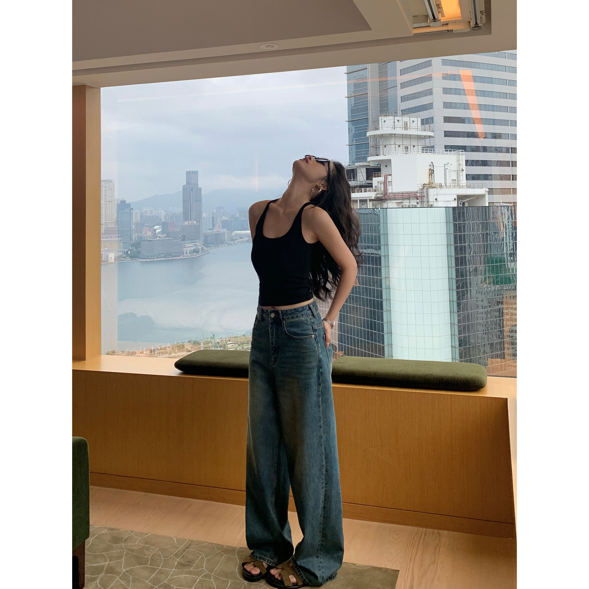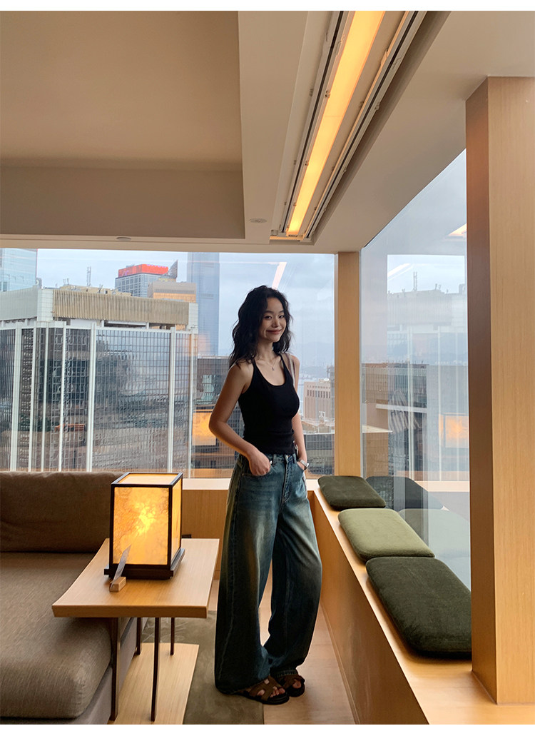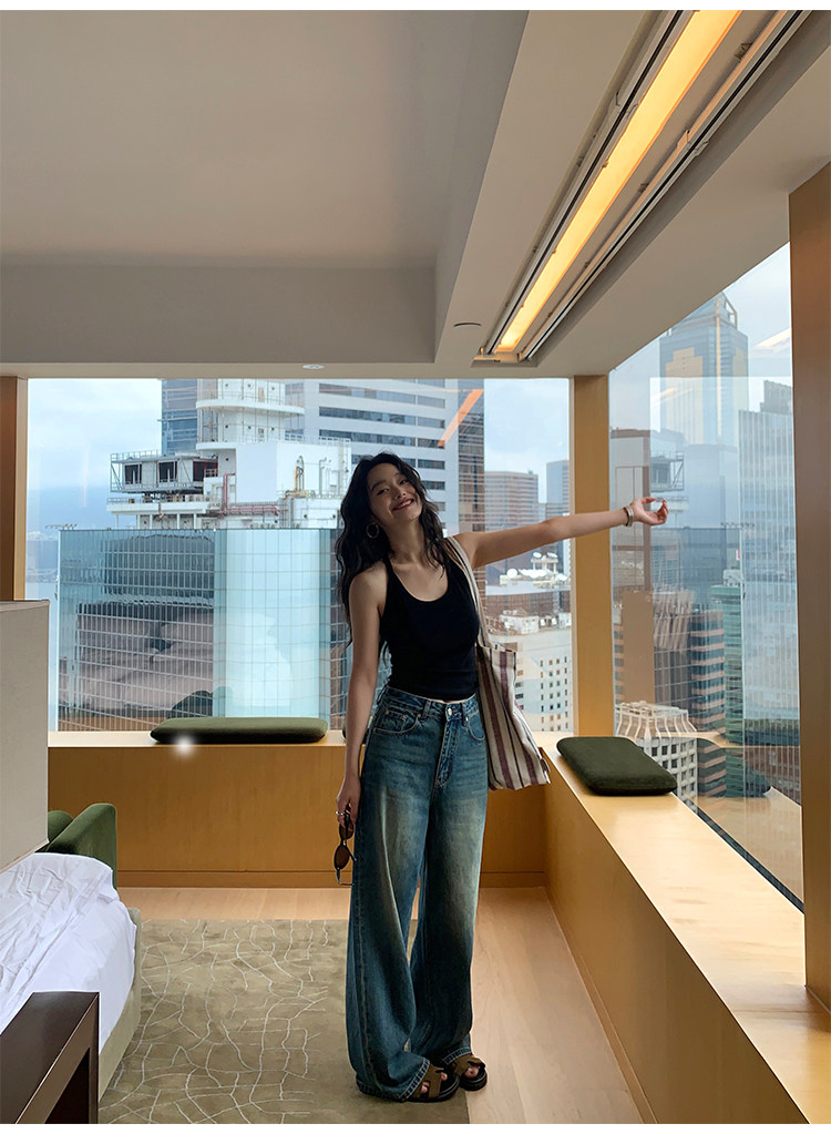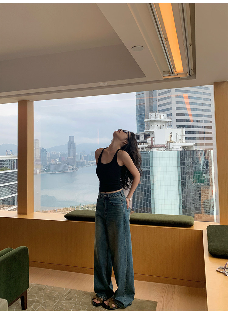 pusumede Топ с чашечками, черная трикотажная майка топ, облегающий крой