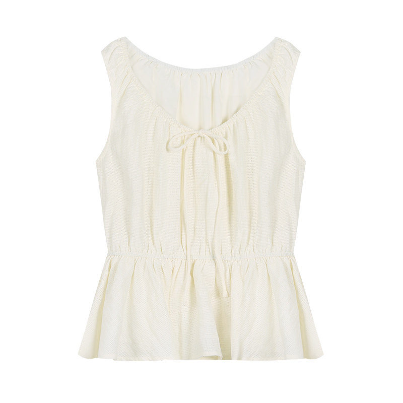 pusumede Летняя текстурированная блузка без рукавов, камзол, женский шикарный топ с поясом