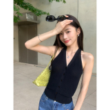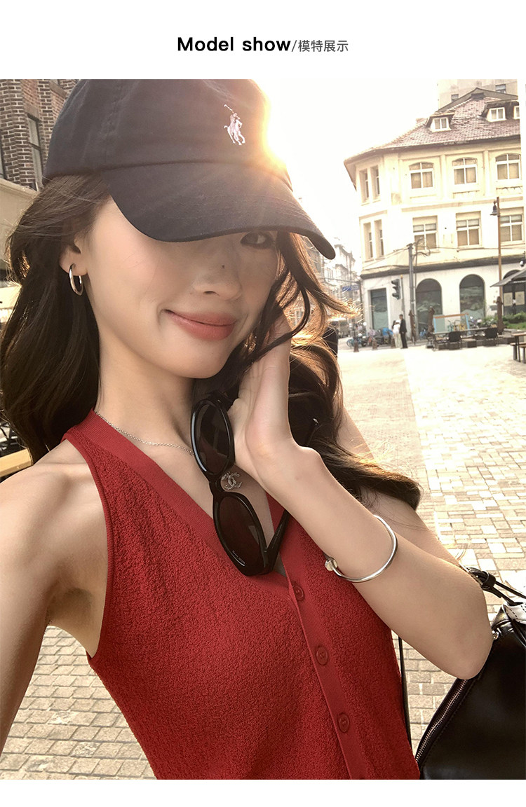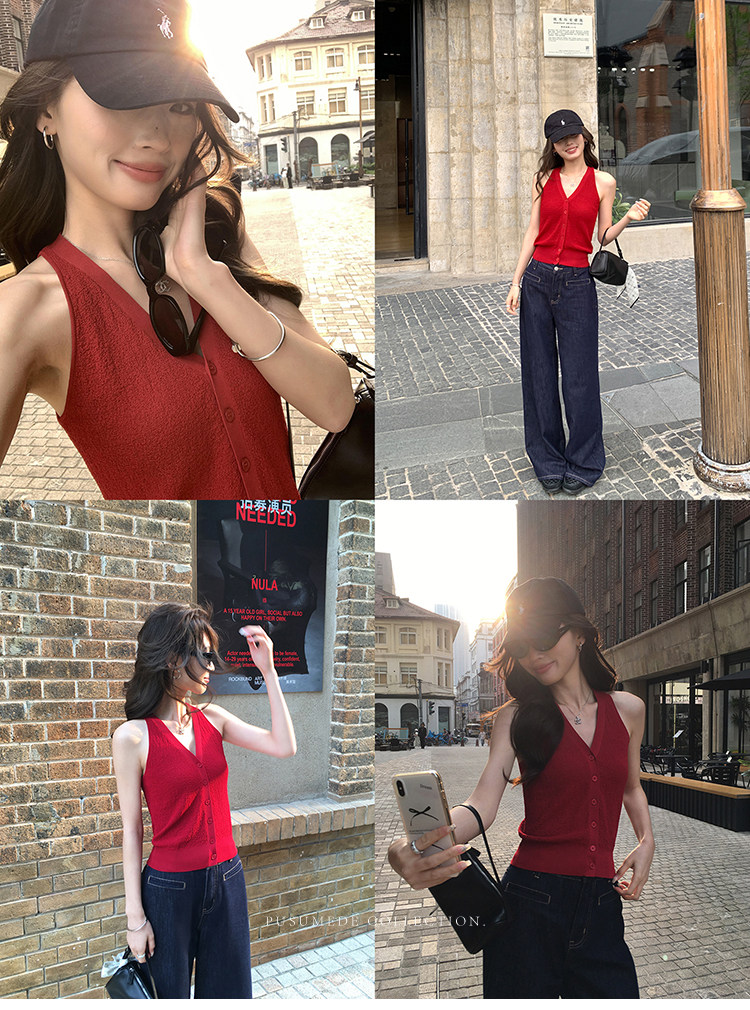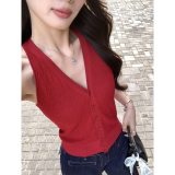 pusumede Трикотажный приталенный жилет, кардиган, французский стиль, эффект подтяжки, V-образный вырез