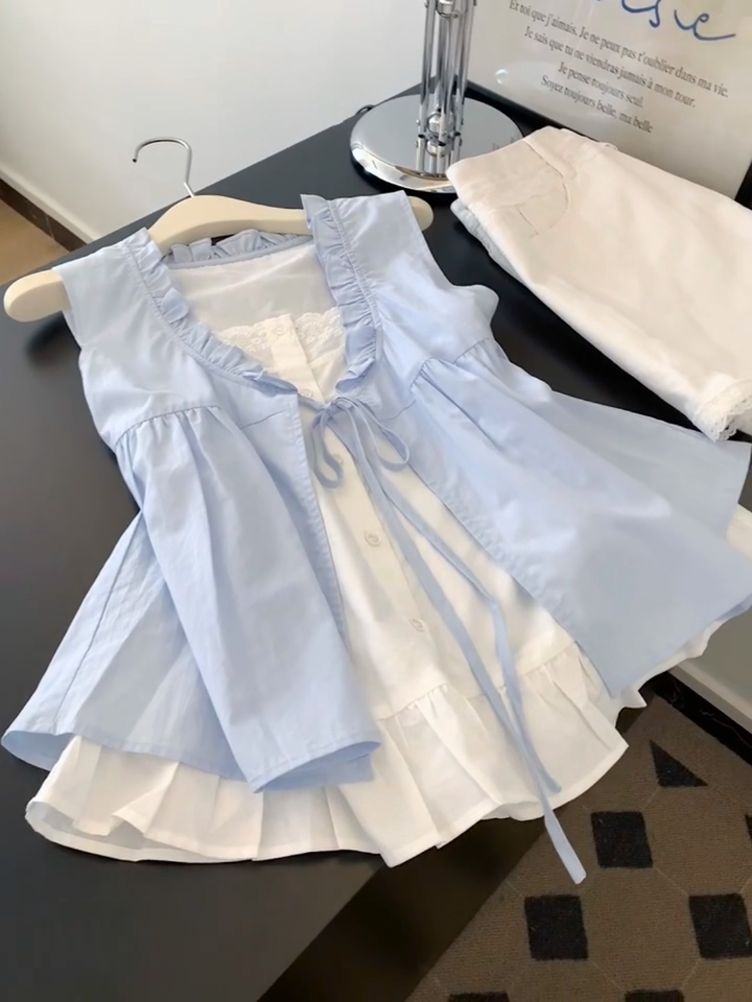 Комплект, летняя милая майка топ без рукавов, размер, городской стиль